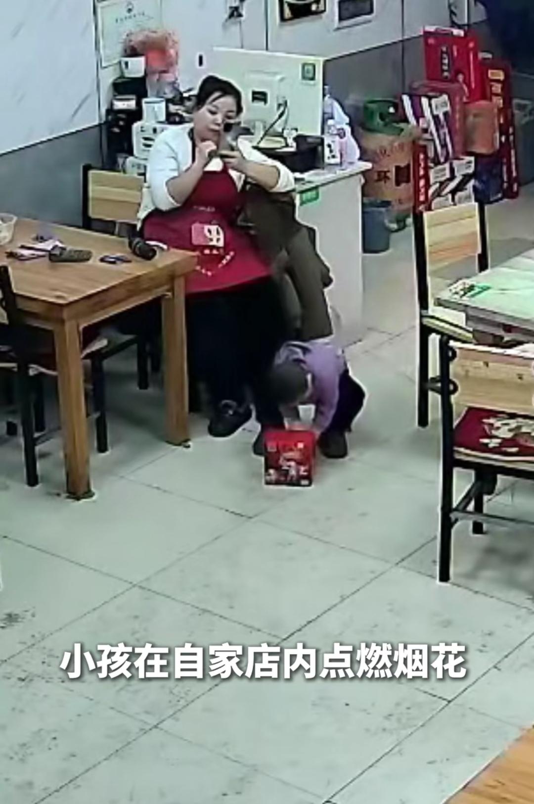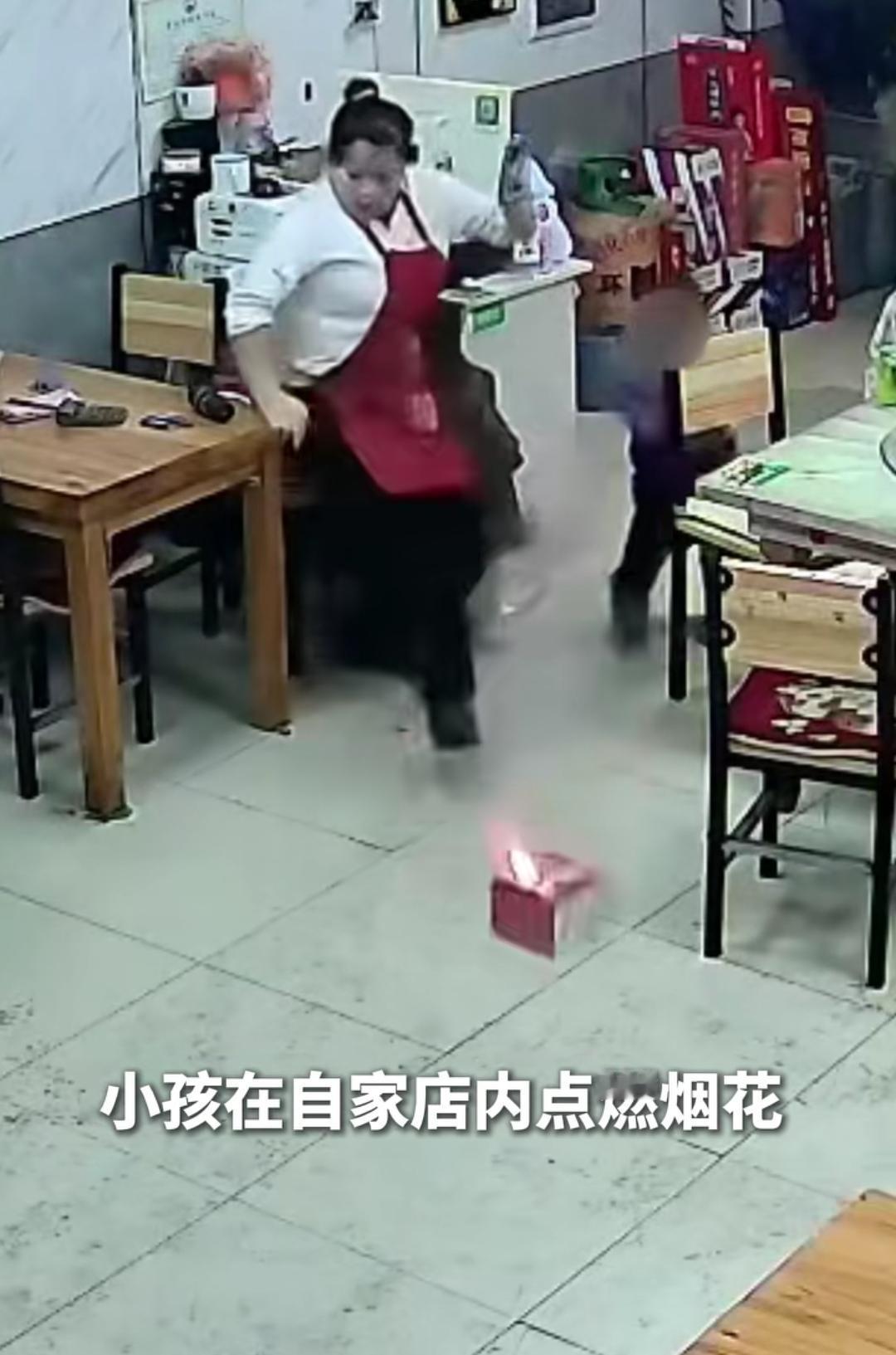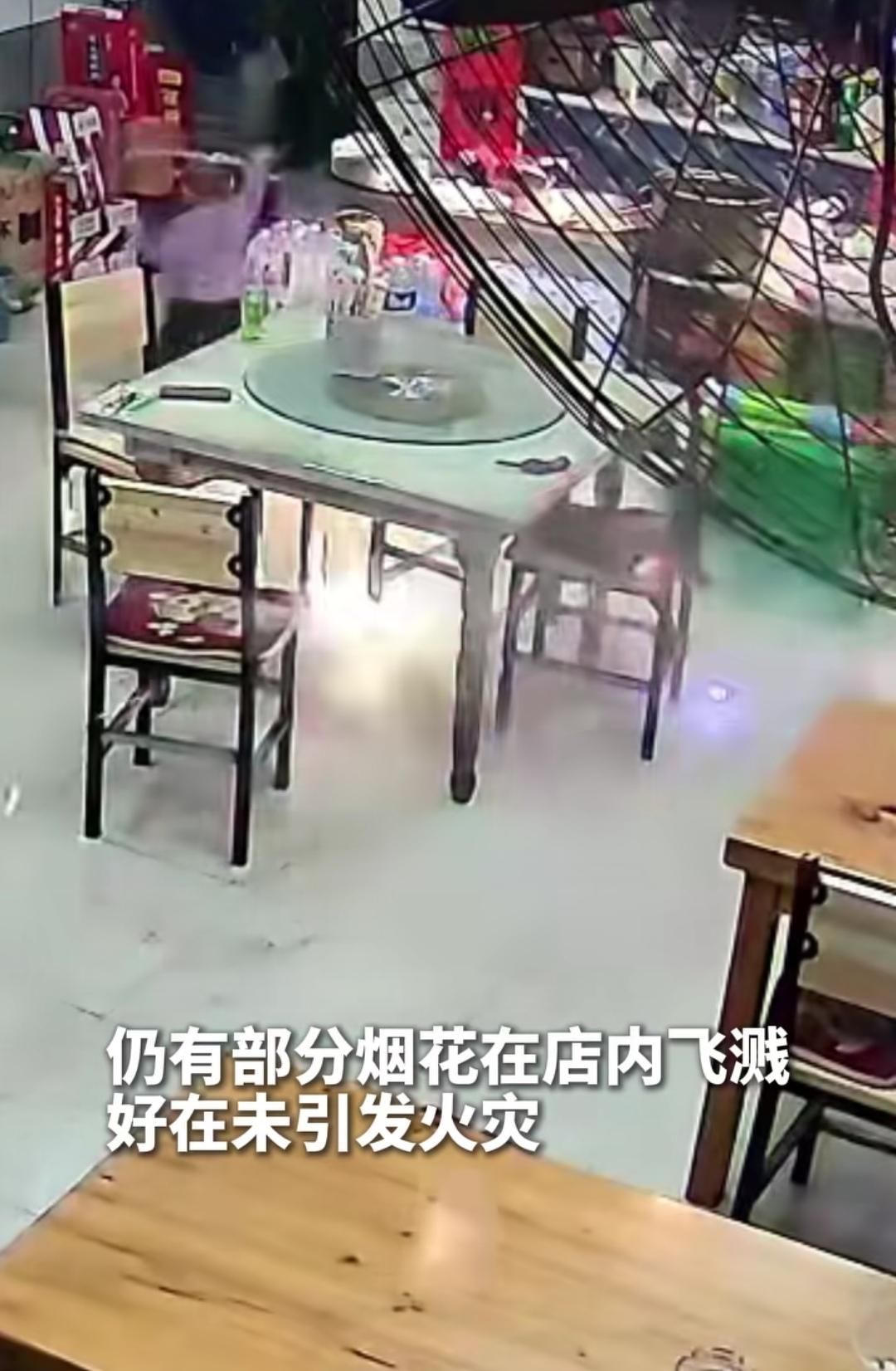熊孩子在自家店铺内点烟花。 (如图所示)大过年,大人们燃放烟花,熊孩子也学得有模有样,竟然直接在自己店铺室内直接点燃烟花,幸亏家长发现及时,和食客一起奋力补救,只有少部分在室内燃放,但未造成火灾损失。这熊孩子可要好好教育一下,这闯祸能力杠杠的!
