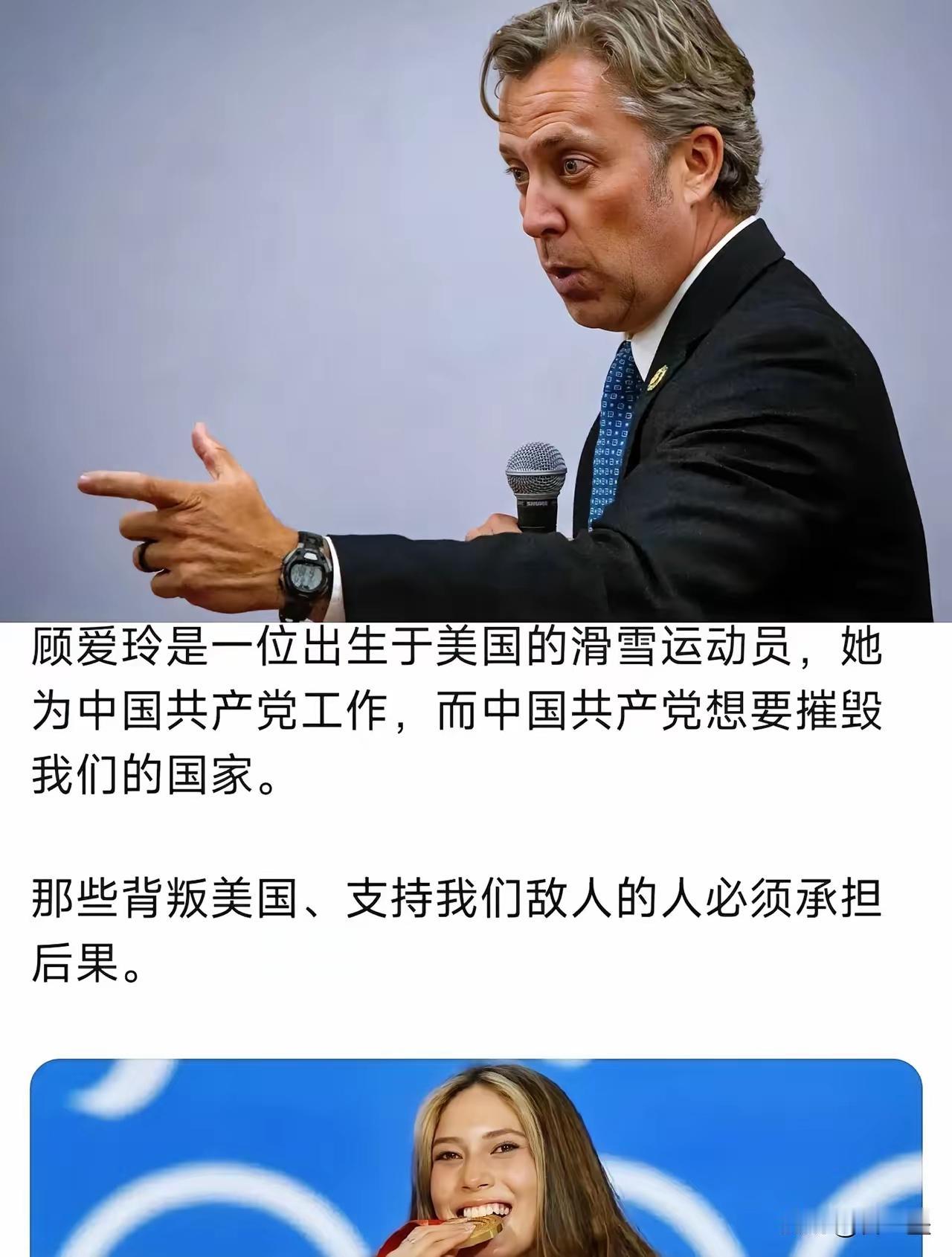 谷爱凌在美国已经有危险了!美国国会众议员叫嚣:“谷爱凌是一位出生于美国的滑雪运动员,她为中国共产党工作,而中国共产党是要摧毁我们的国家。那些背叛美国,支持我们敌人的人必须承担后果”。 原来以为美国是正人君子的人,现在该醒醒了,小肚心肠,嫉妒仇视,打击报复,美国无所不用其极!美国永远是“忘我之心不死”。现在和你坐下来谈,是因为美国实在没有别的办法了! 谷爱凌神图 iwc谷爱凌