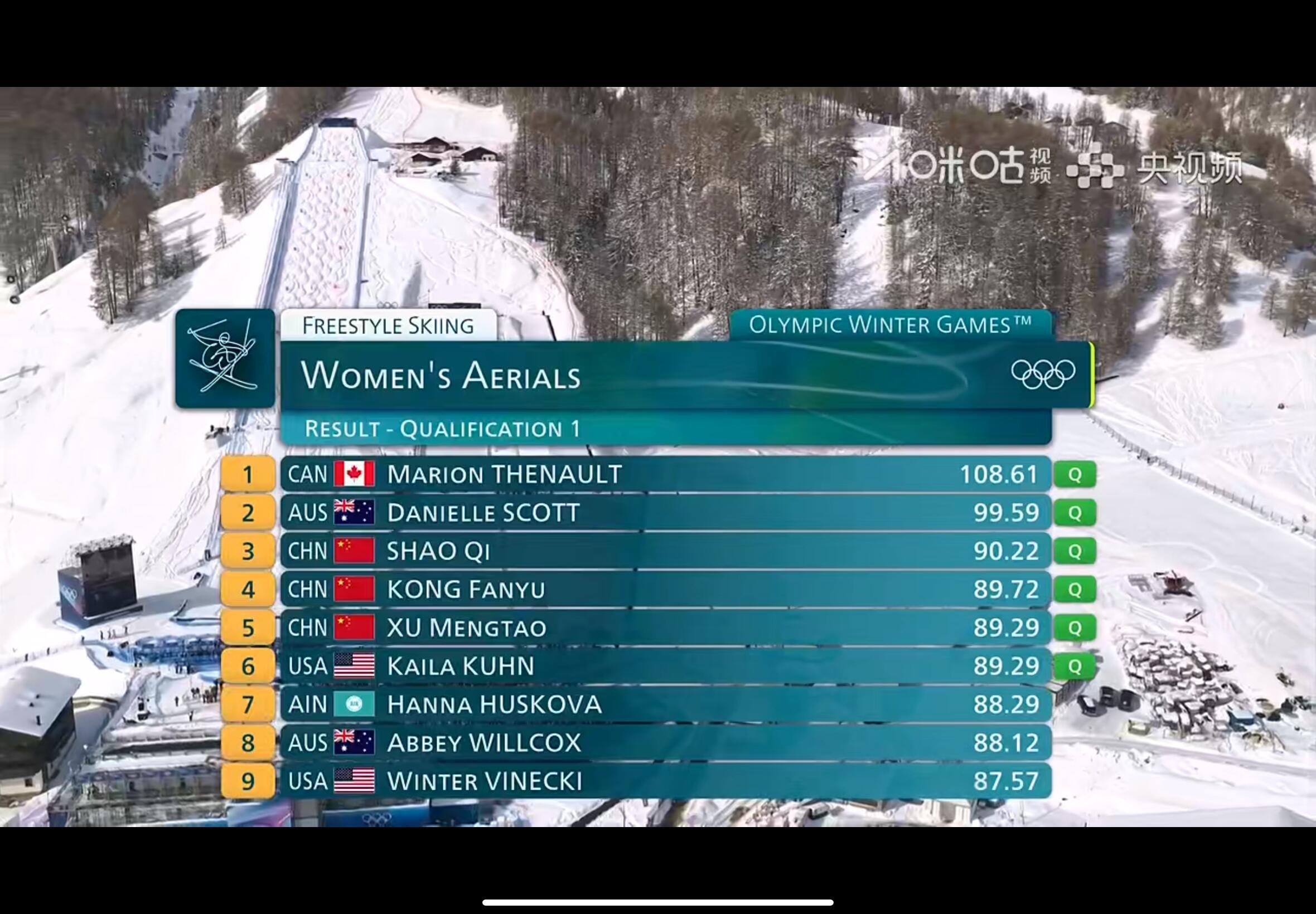 邵琪孔凡钰徐梦桃晋级决赛自由式滑雪女子空中技巧 第一轮成绩排名,中国队邵琪,孔凡钰,徐梦桃三位选手进入决赛了!全民聊冬奥V观冬奥会
