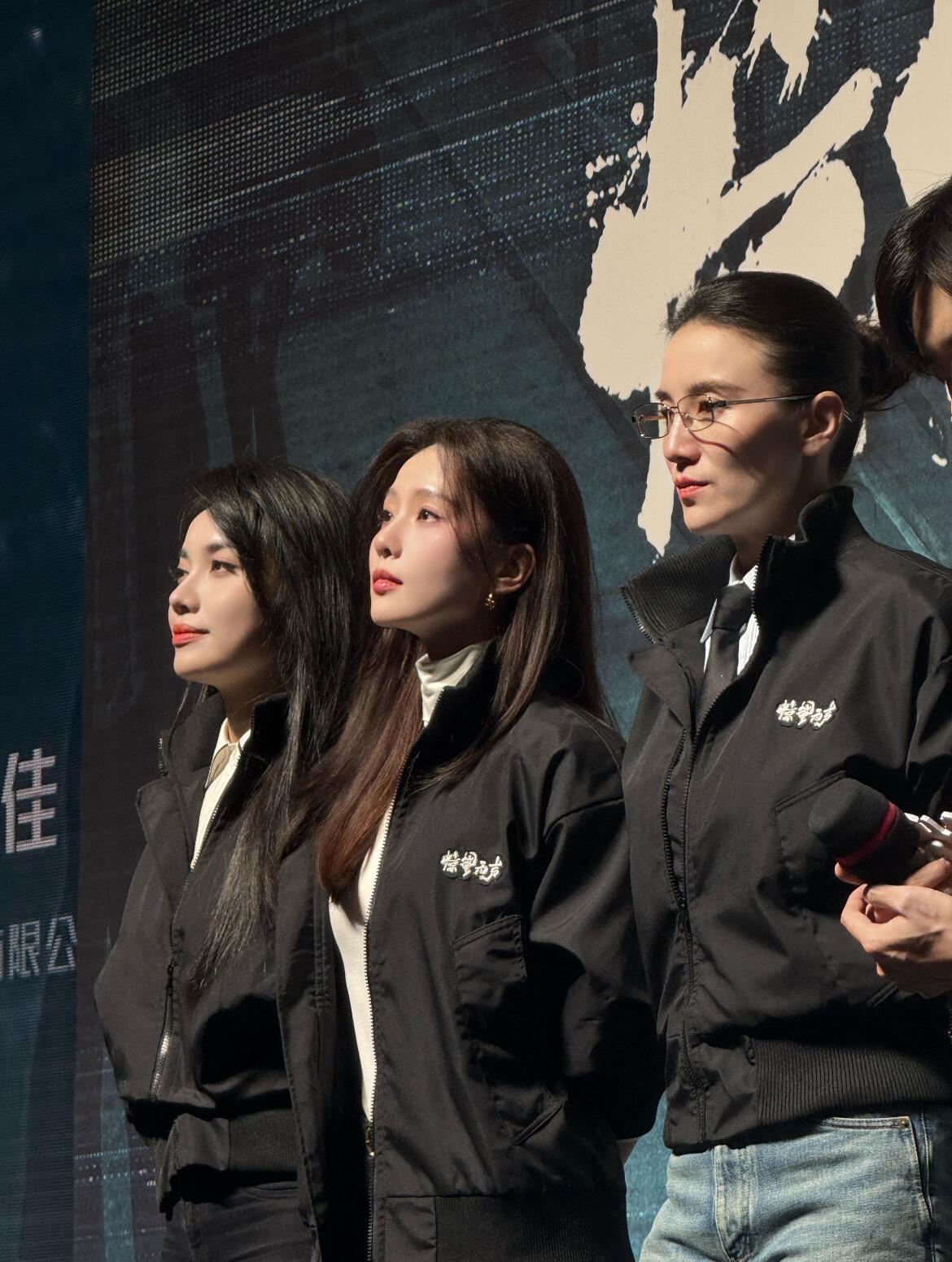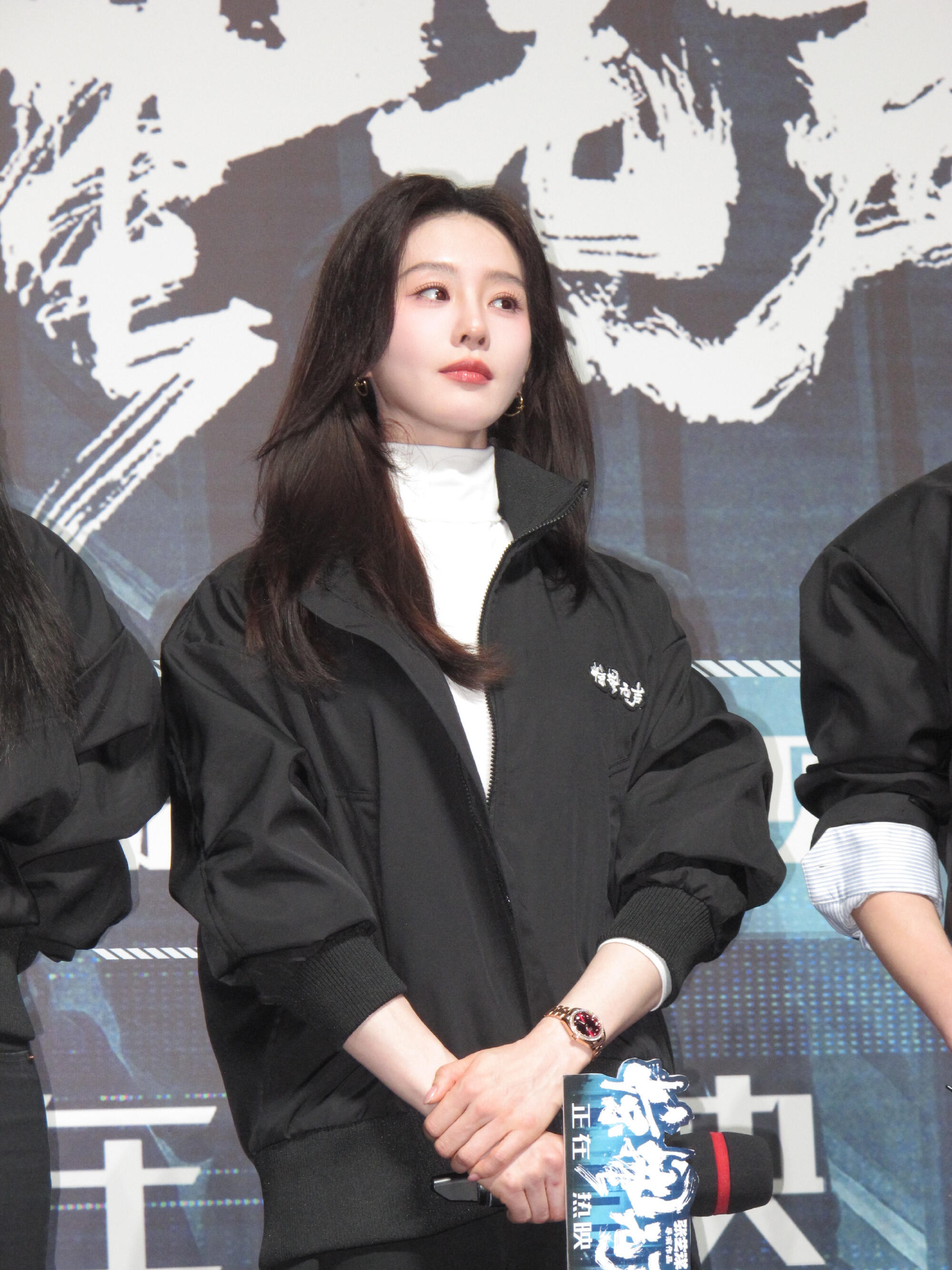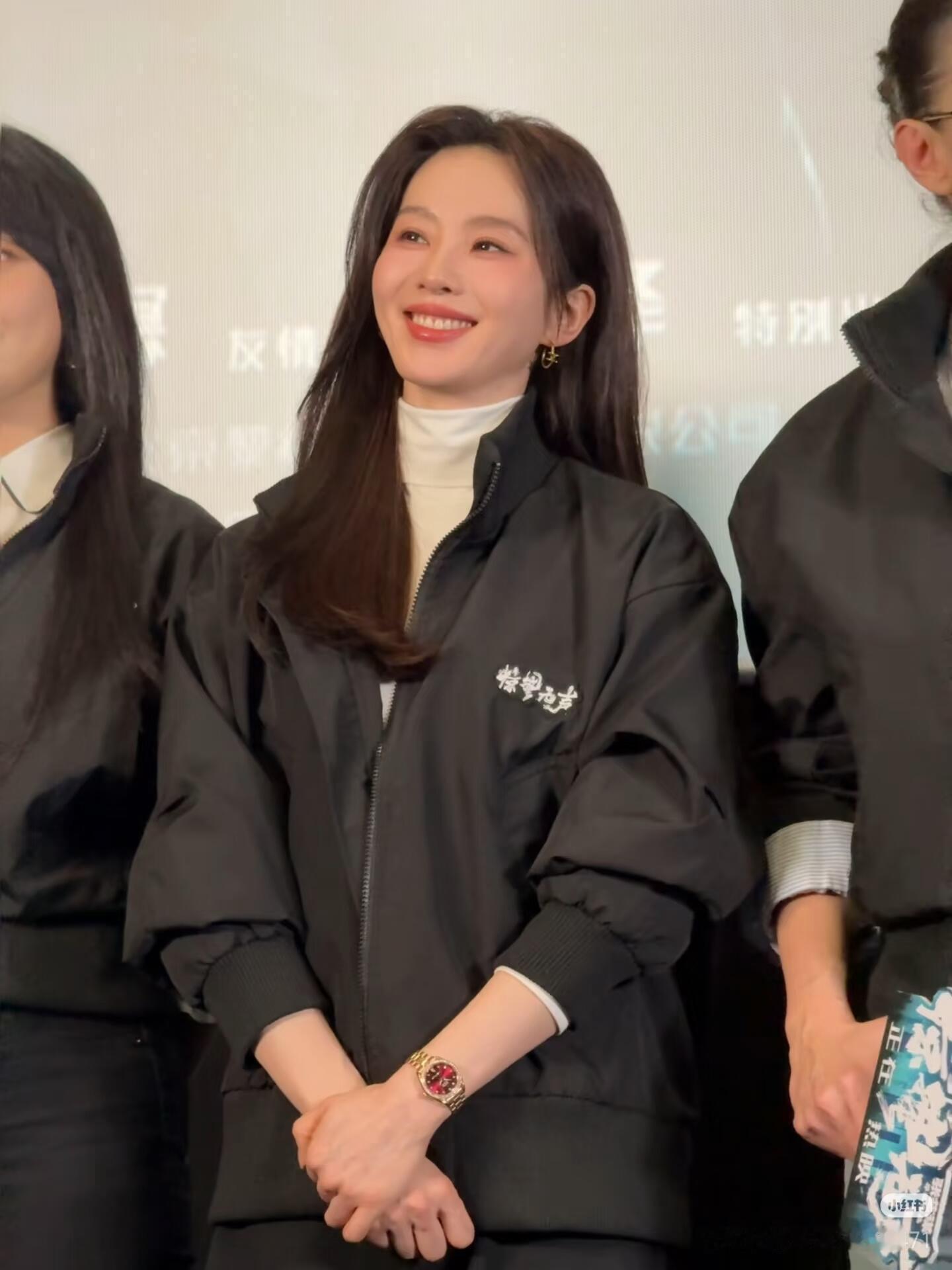 张天爱跟素人合影,胯真的好宽,大宅院似的