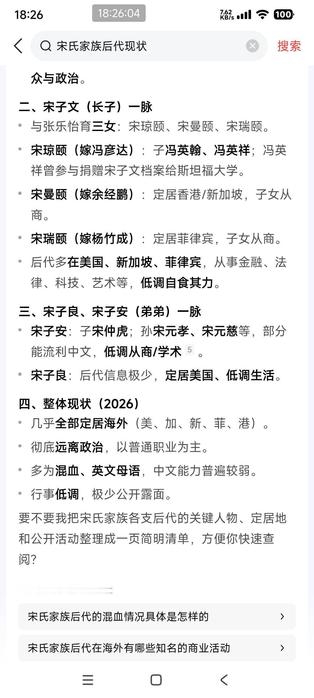 这是1949年1月宋子文夫妇飞抵香港启德机场,准备前往美国时拍的照片。 衣冠楚楚的宋子文从自己的国家收割民脂民膏,获得了一笔天文数字财富。 怕被自己的姐夫收割,选择去投靠美国。 历史上对于宋子文的评价是依附美英、损害国家主权。他是近代中国极具争议的复杂历史人物,有功有过、毁誉参半。 宋子文美国财产概况(1971年去世) 法庭公开遗产:约137万美元现金+证券、75万美元古董字画、27万美元长岛别墅,合计约239万美元。 1950年代在美国拥有230万美元,属于顶级富豪(Top 0.001%级别),是当时的超级富豪。 宋子文有三个子女,现在三个子女的后人都很低调。 抛开其它不说,单单他从国内携带大量财富去美国,就无法得到国人的原谅。