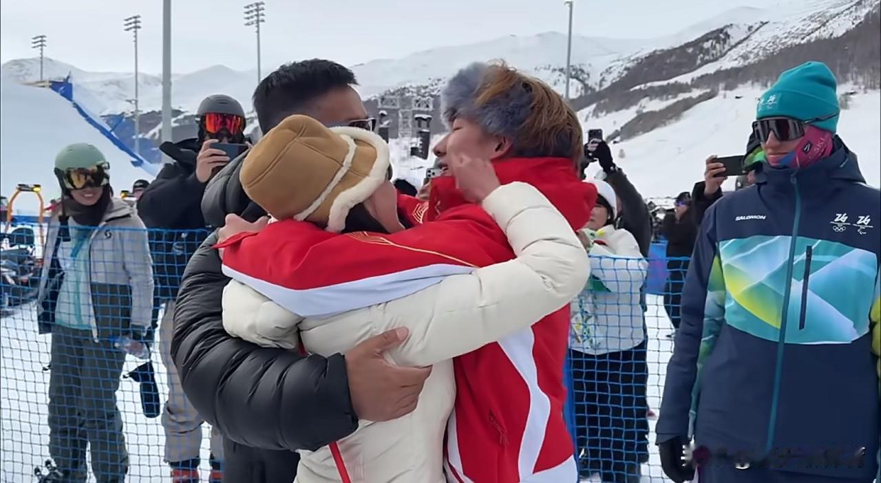 感动一幕!苏翊鸣夺冠后第一时间跑到爸爸妈妈身边,抱着爸爸妈妈痛哭[流泪][流泪]真的看哭了,在爸爸妈妈面前还是个孩子,在国际赛场上却是独当一面的战士!妈妈还摸着儿子的小脸蛋,给儿子擦眼泪!十几年的努力,终于在米兰圆梦了,苏翊鸣尽情释放压力,也为中国队拿下了本届冬奥会的第一块金牌,还是在自己22岁生日当天,在米兰升国旗奏国歌!