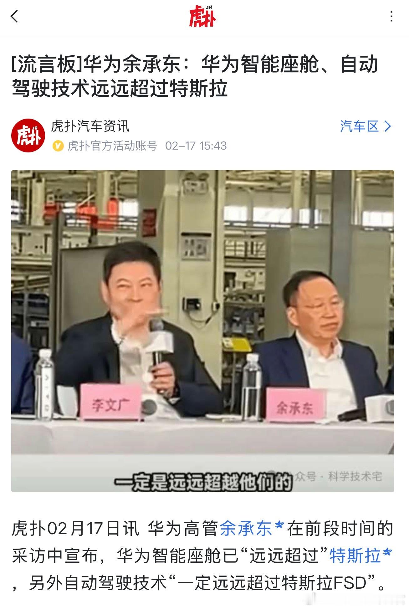 余承东说座舱和智驾,华为都远胜特斯拉,你们觉得呢