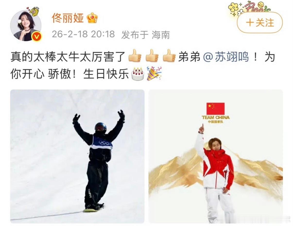 佟丽娅祝贺苏翊鸣夺金牌佟丽娅祝贺苏翊鸣夺金!三连赞+生日祝福,这波应援太到位了!为弟弟开心骄傲,这就是最真实的粉丝心态,谁能不为苏翊鸣的22岁生日金牌疯狂呢!全民聊冬奥v观冬奥会