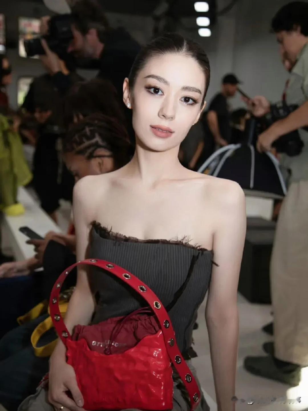张天爱跟素人合影,胯真的好宽,大宅院似的