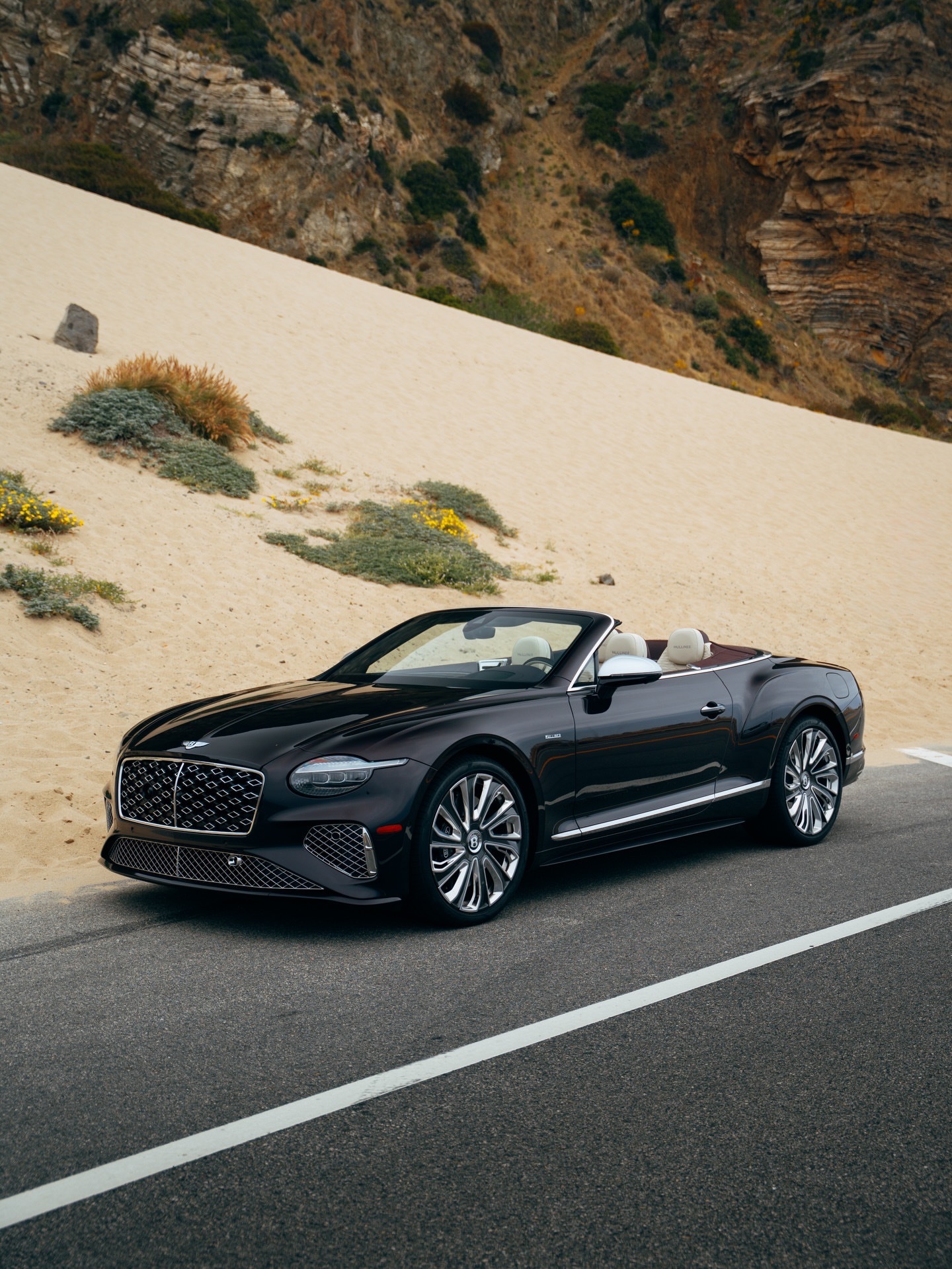 当海岸的宁静遇见手工奢华——一款优雅停泊在岸边的宾利 GTC Mulliner,永恒的设计与潮汐的节奏相映成趣。