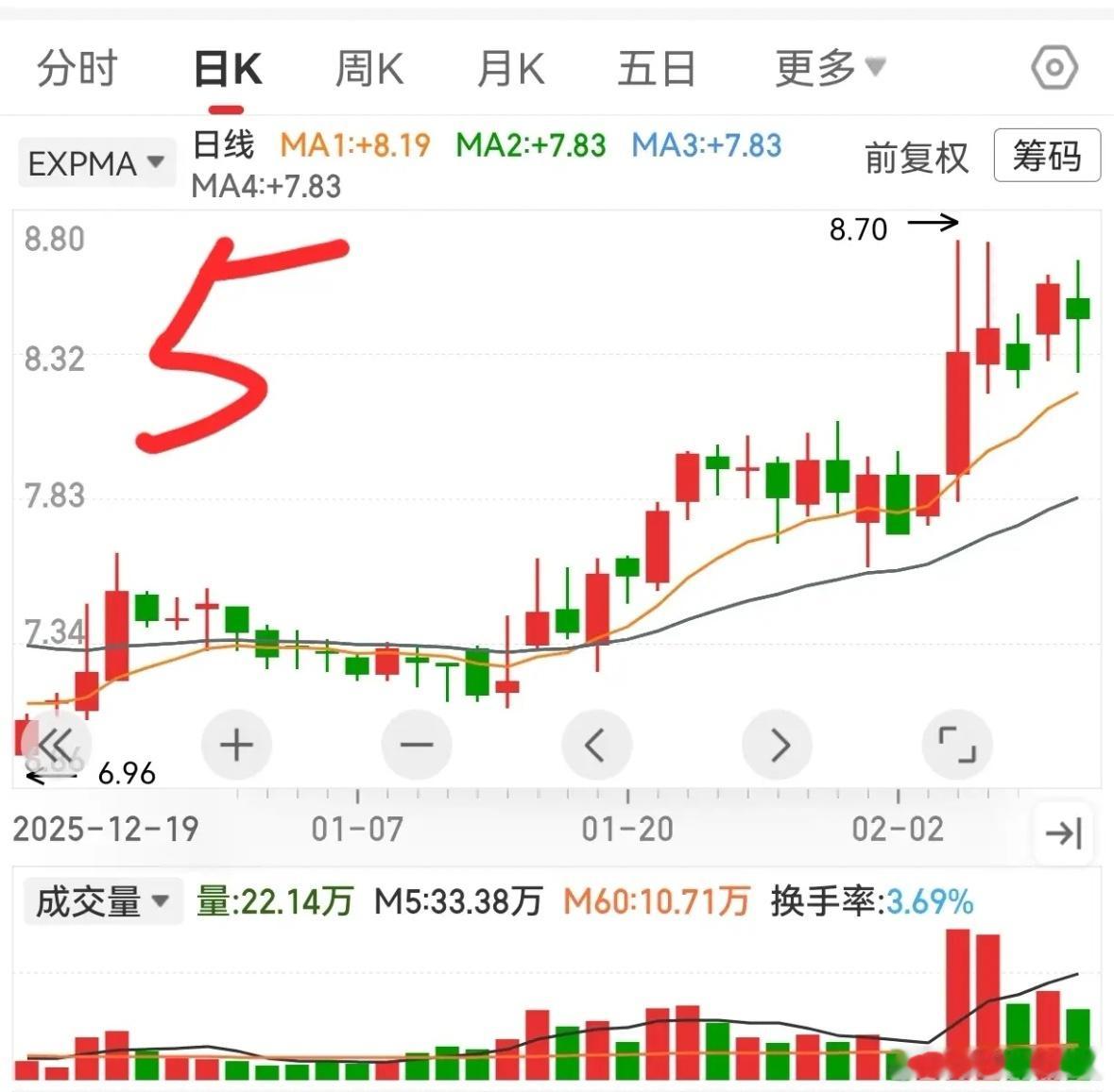 4. 横盘6天与生命线交汇,双线向上