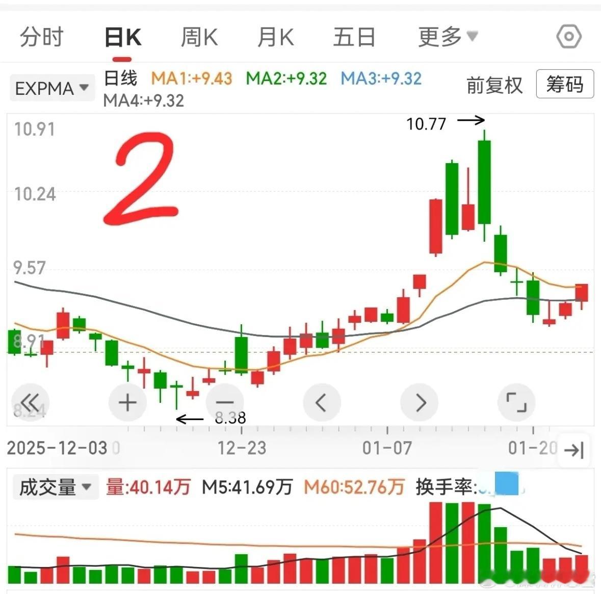 1. 高位横盘,缩量回靠生命线
