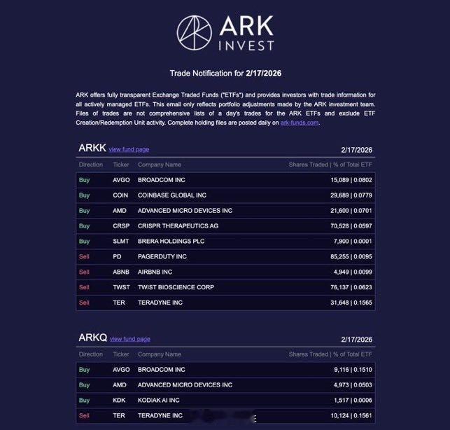 Cathie Wood 和 ARKInvest 刚刚发布了他们2月17日的交易。
