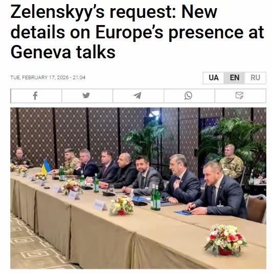 原来是泽连斯基请求的!据消息人士称,2月17日,欧洲国家的代表参加了乌克兰、美国和俄罗斯在日内瓦举行的会谈。该消息人士称,应乌克兰总统弗拉基米尔·泽连斯基的请求,欧洲国家代表加入了谈判。据称:"(泽连斯基)总统与美国人讨论此事,以便欧洲能够被代表。” 消息人士补充说,2月17日当天,乌克兰代表团将继续与欧洲方面会谈,之后将向泽连斯基汇报所有谈判进展。