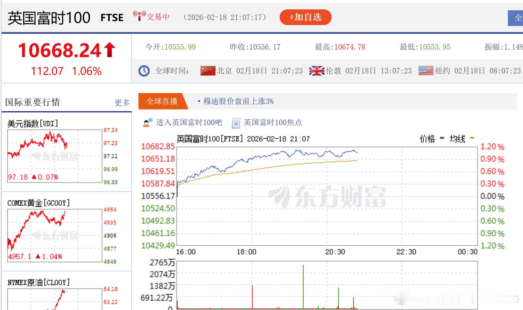【美股AI抛售潮或将结束】全球市场大反攻北京时间2月18日晚间,欧洲股市全线大涨,截至20:30,英国富时100指数涨近1%,创历史新高;欧洲斯托克600指数涨近1%,续创历史新高;德国DAX30指数日内涨幅达0.81%,法国CAC40指数涨0.45%,意大利富时MIB指数、西班牙IBEX35指数均涨超1%。
