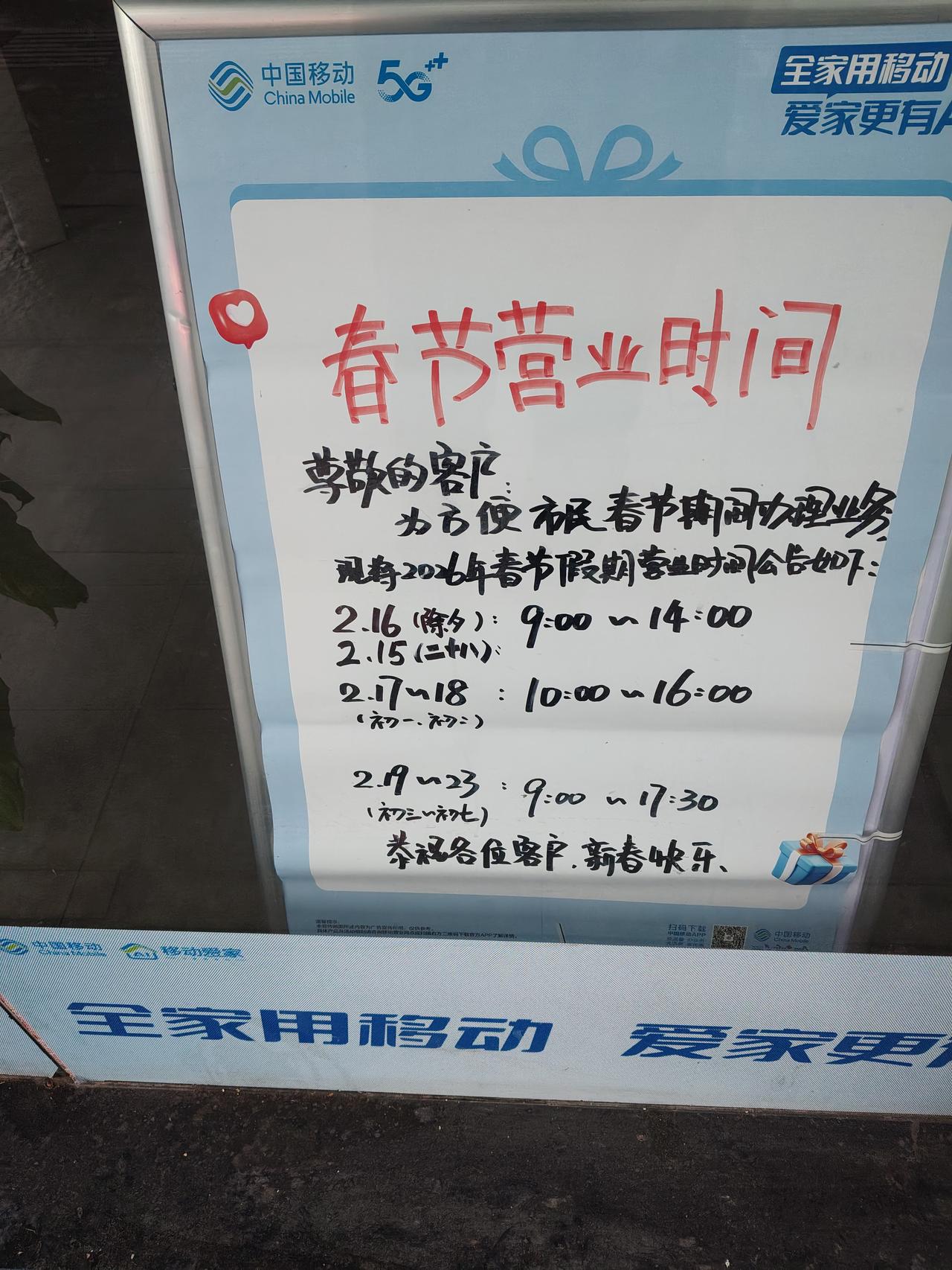春节期间,中移动营业时间[灵光一闪][灵光一闪]