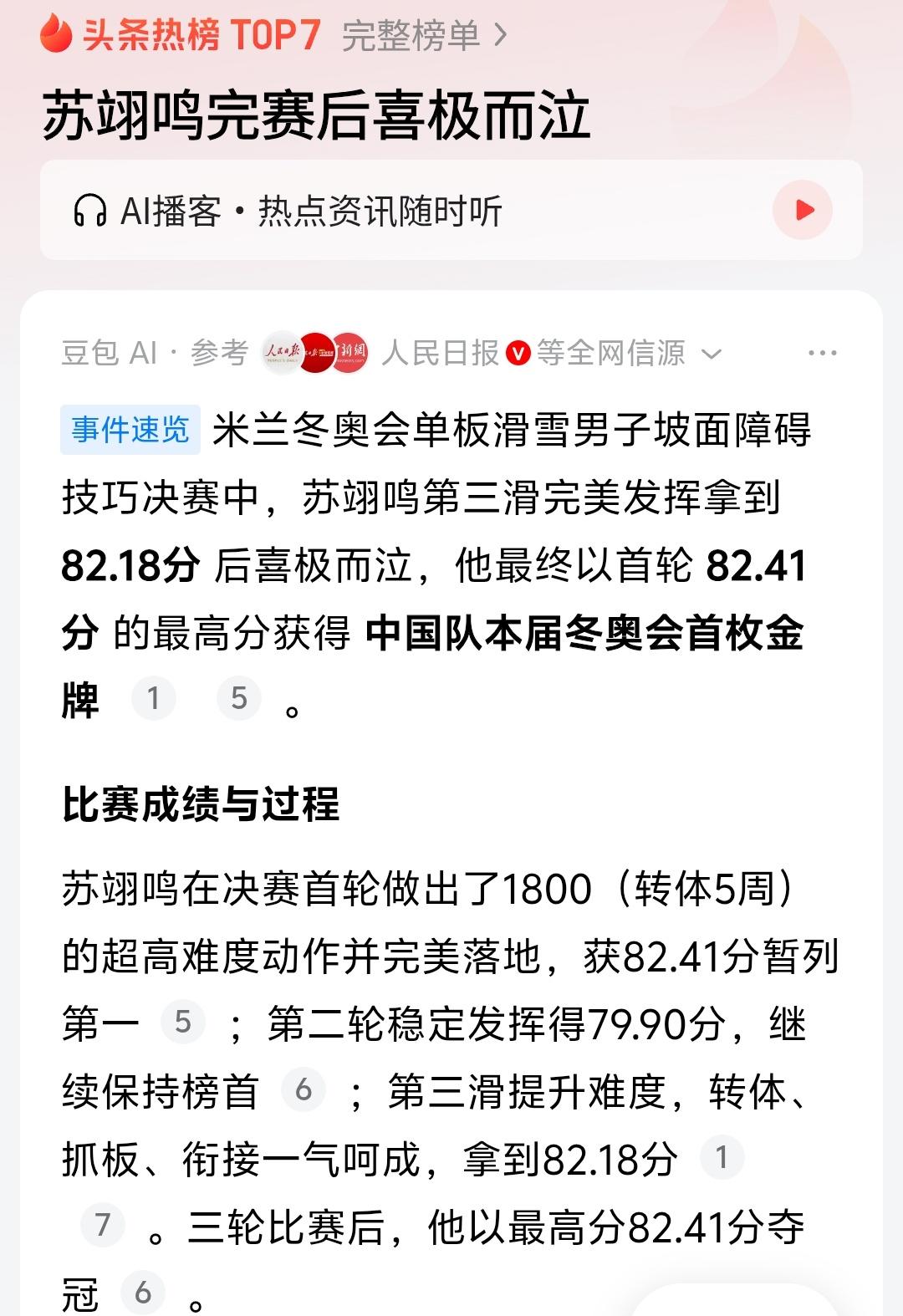 苏神,这是冬奥会真的苏神,他终于让中国代表团实现金牌“零突破”,其实这是最难的,苏翊鸣拿到这枚金牌后紧接着徐梦桃就拿到了本届冬奥会第二枚金牌,真的一天双喜临门啊,尤其是苏翊鸣这一天还是他的生日,真的是生日春节最好的礼物!