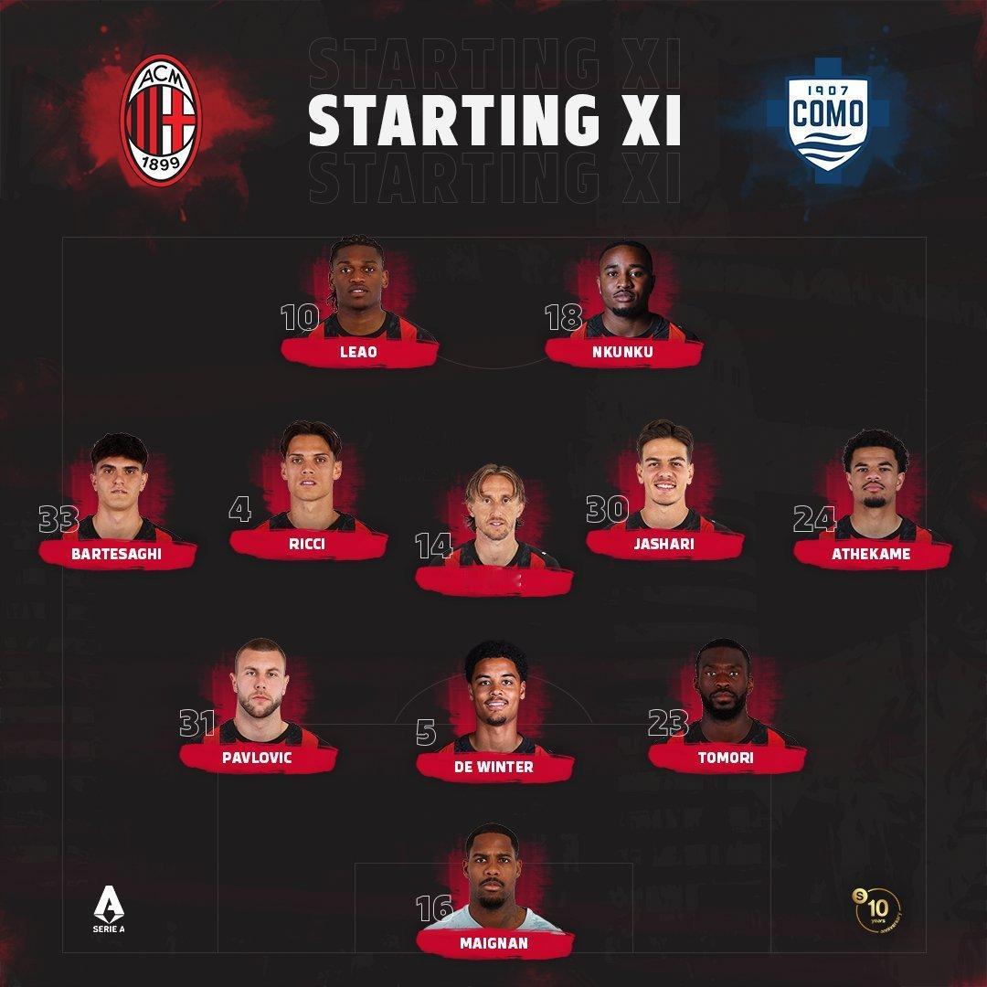 【首发阵容】2025-26赛季意甲联赛 第24轮补赛-🔴⚫️米兰主场对阵科莫队(352);队长:迈尼昂🇫🇷.©️
