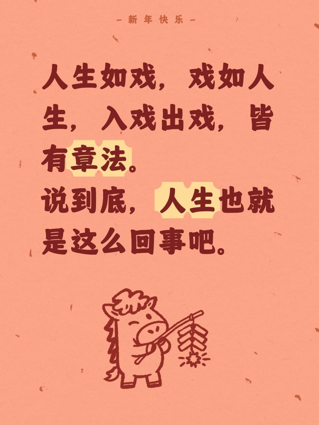 人生如戏,戏如人生,入戏出戏,皆有章法。 说到底,人生也就是这么回事吧。