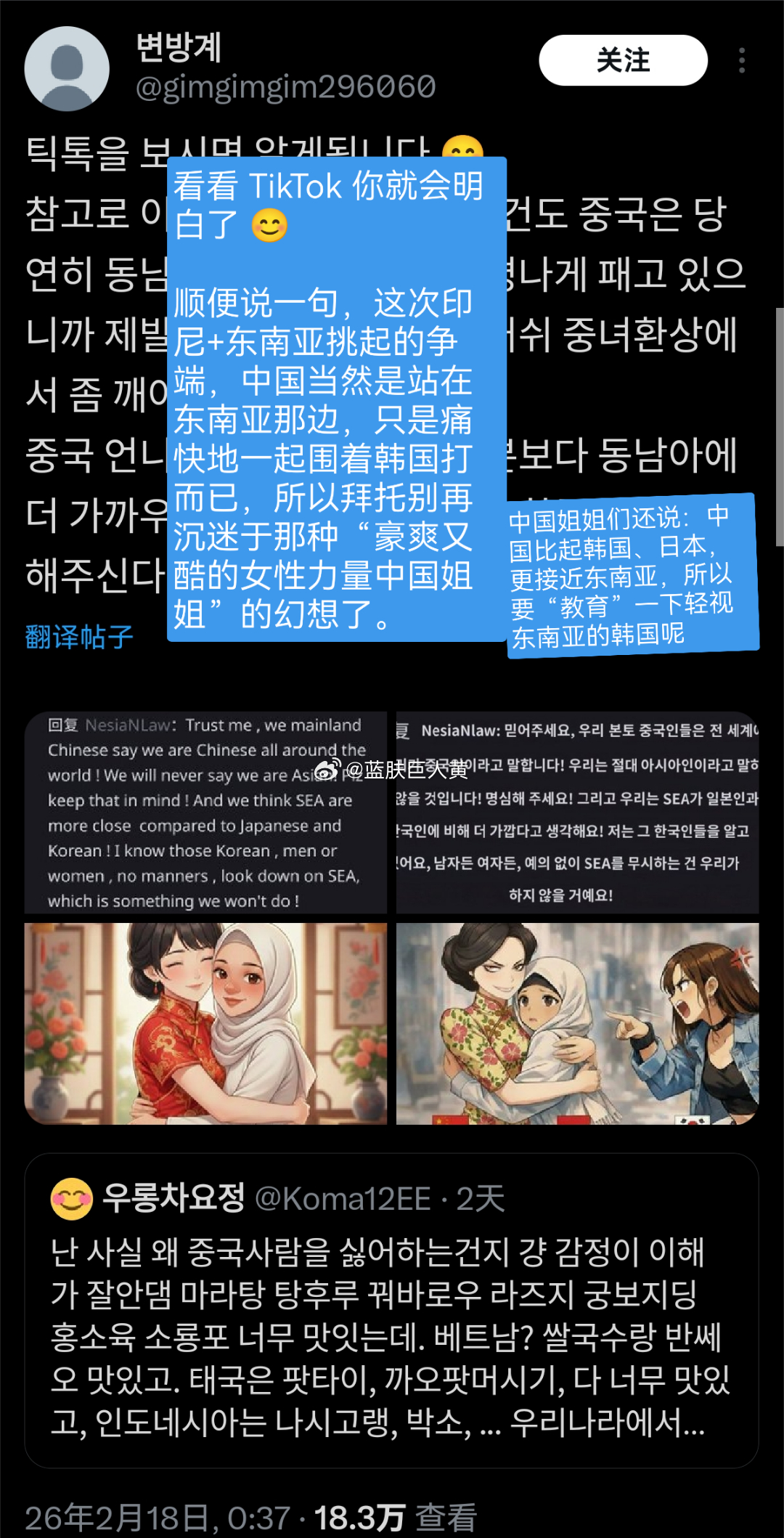 韩国和东南亚的网络大战,有韩女突然感慨“很难理解为什么韩国人要讨厌中国?”,转发