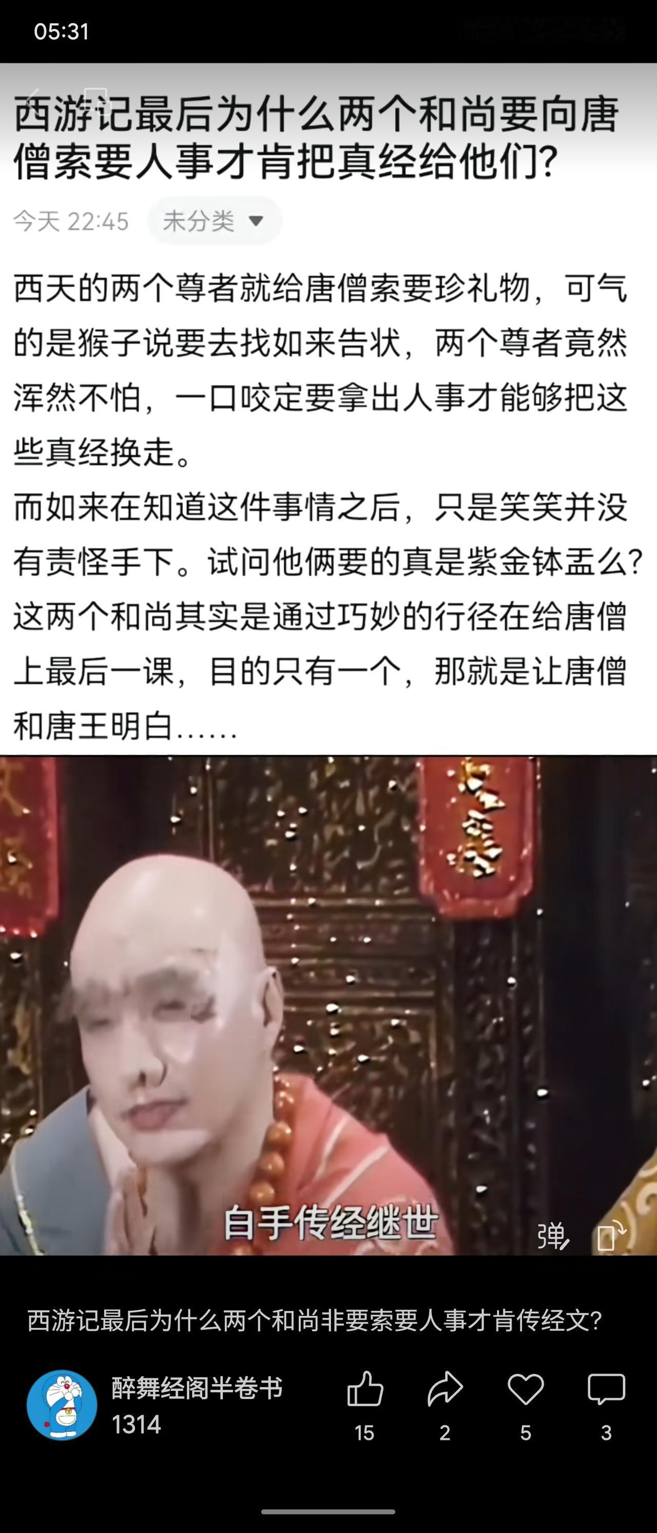 新年生活图鉴《西游记》结尾,两僧向唐僧索要“人事”才肯传经,悟空告状,如来却未责怪。此举意在点醒唐僧:佛法珍贵,不可轻传,需付出代价方知珍惜。
