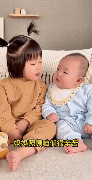 弟弟好似听懂了姐姐说的话,所以才不断的回应“嗯!” 小姐姐当的真好,弟弟的人生第一课“礼道”,是姐姐给上的。