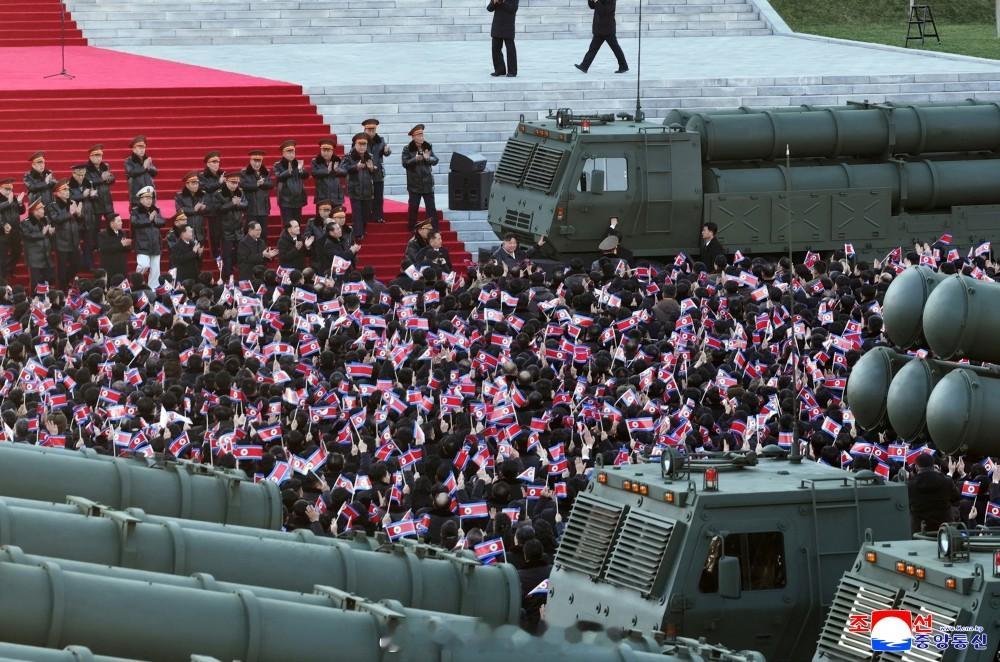 军工部门工人阶级献给朝鲜劳动党第九次代表大会的600毫米大口径火箭炮赠送仪式2月18日在首都平壤隆重举行。