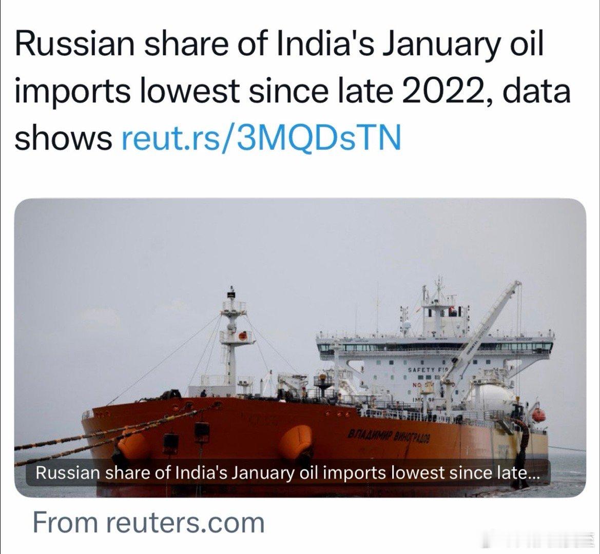 印度与美国达成贸易协议以来,正减少买俄油,进口比例降至2022来低点⛽️