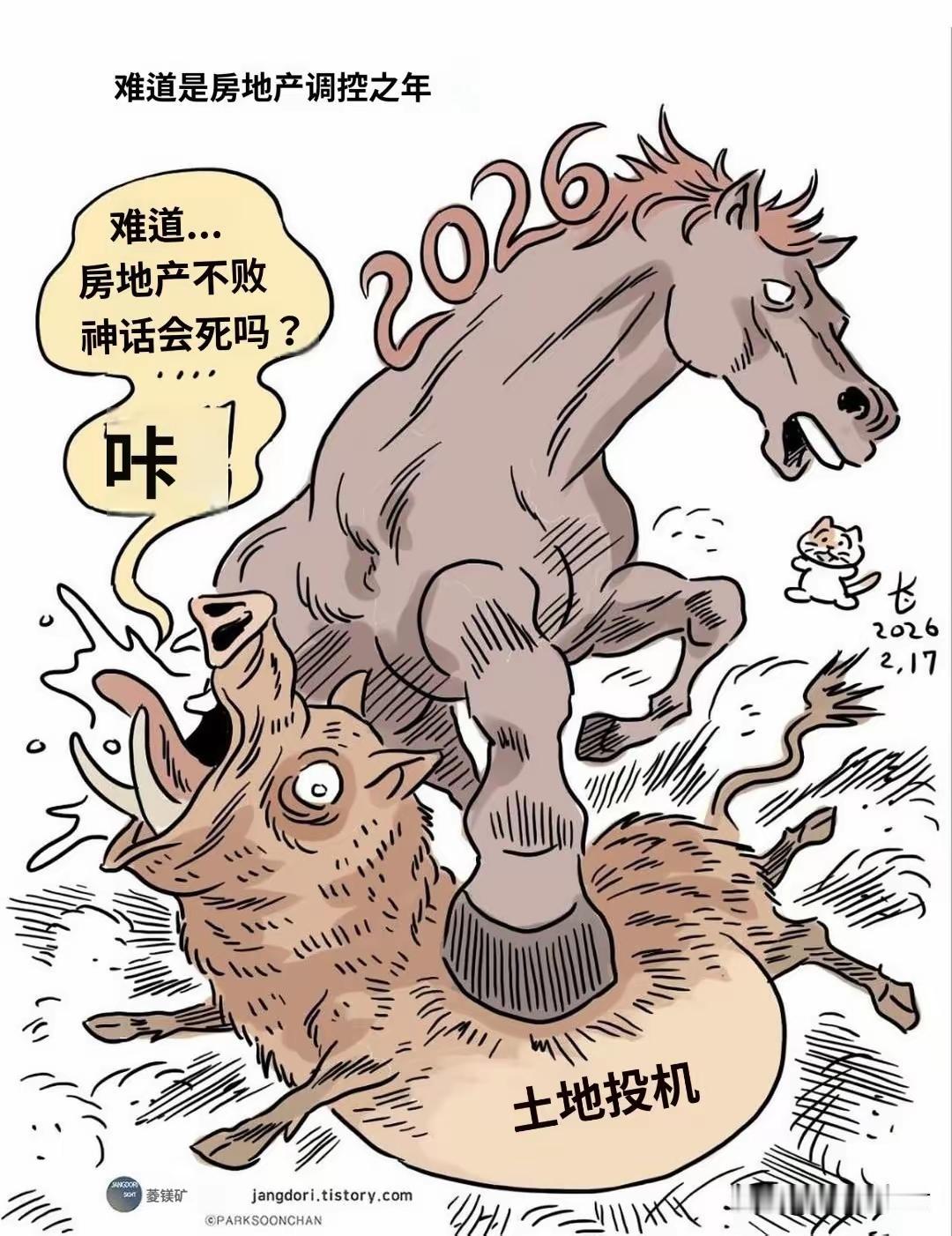 必须狠狠夸一句:李在明这波新年整活,简直把“打击房地产投机”玩出了新高度! 新年晒出漫画,一匹骏马狠狠踩住标着“土地投机”的野猪,旁边配文“难道房地产不败神话会死吗?” 这画面感,这决心,谁看了不说一句大佬真敢画、真敢说! 先夸夸这“高明”的表态: 用漫画当“宣战书”,比发100份政策文件还吸睛,直接把“打击投机”送上热搜 精准戳中韩国人痛点:首尔房价10年涨3倍,年轻人掏空6个钱包都买不起,炒房团把房价炒成宇宙第一高 喊出“打击房地产投机之年”的口号,主打一个态度拉满、情绪到位 但咱得接着夸,夸这“雷声大、雨点小”的传统艺能韩国喊“打击炒房”喊了多少年? 从卢武铉到文在寅,再到现在的李在明,口号喊得比房价涨得还快,可炒房团照样赚得盆满钵满,首尔房价还是稳居全球前三。 其实数据都摆在那里,韩国房地产投机规模超100万亿韩元,背后全是财阀和权贵的影子 去年韩国出台20多项调控政策,结果房价还是涨了5.2% 年轻人买房难到什么程度?首尔一套房要不吃不喝30年才能买得起 表面是“骏马踩野猪”的热血漫画, 实则是年年喊调控、年年涨房价的循环闹剧。 表面是“打击投机”的强硬表态, 实则是不敢动财阀蛋糕的“纸面功夫”。 漫画画得再凶,不如动真格查一查那些囤地的财阀;口号喊得再响,不如让年轻人能真正买得起房。 你觉得这次李在明的“踩猪”漫画,是真要动炒房团的蛋糕,还是又一次表演式调控? 李在明