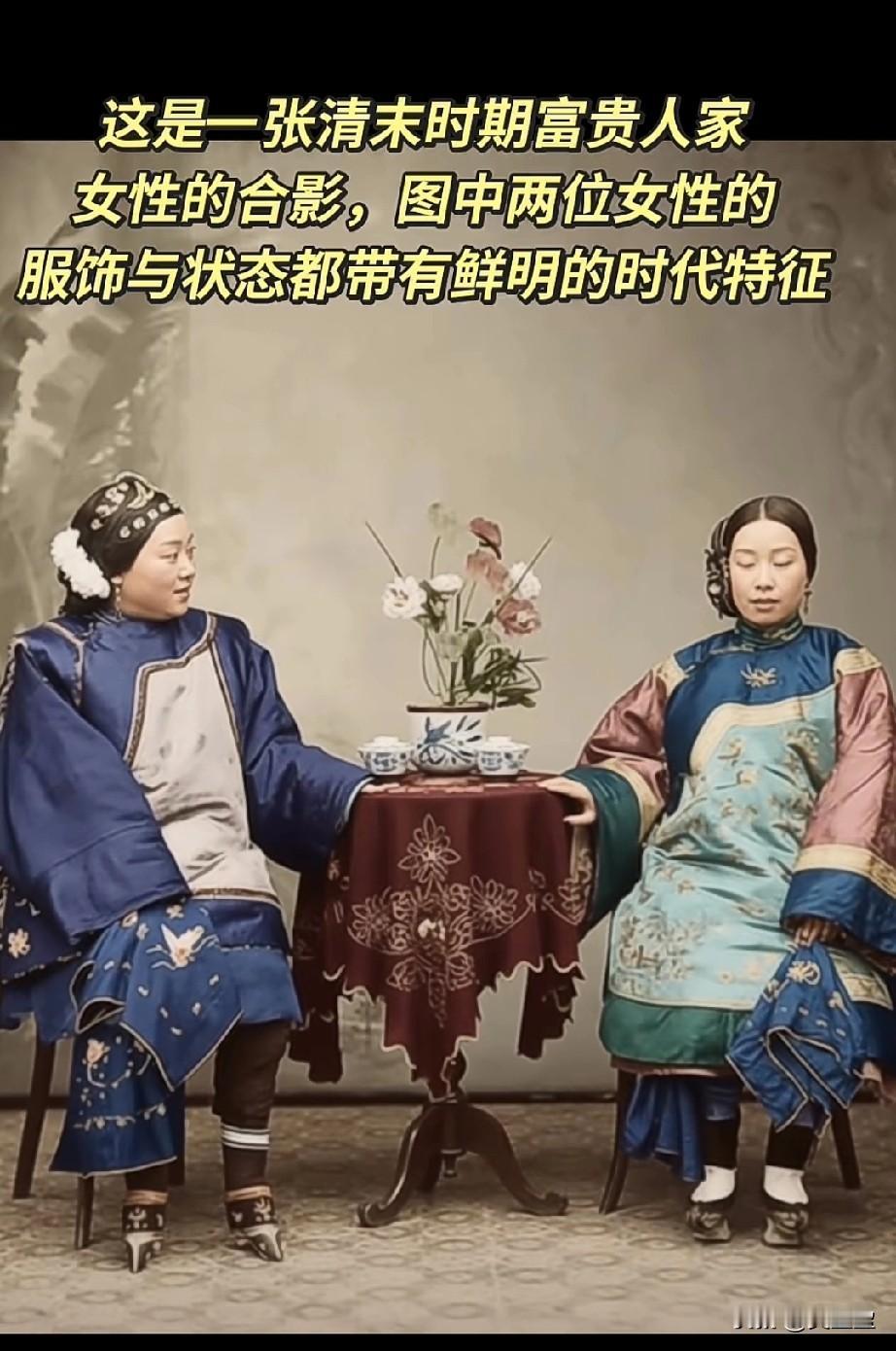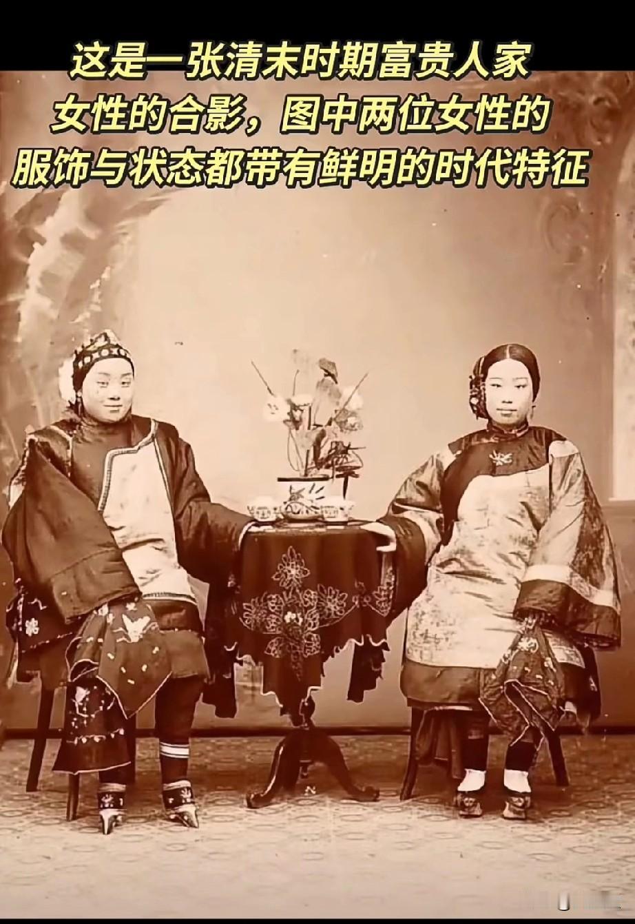 那小脚 那恨天高的鞋子 怎么走路啊? 这是一张清末时期富贵人家女性的合影,图中两位女性的服饰与状态都带有鲜明的时代特征!