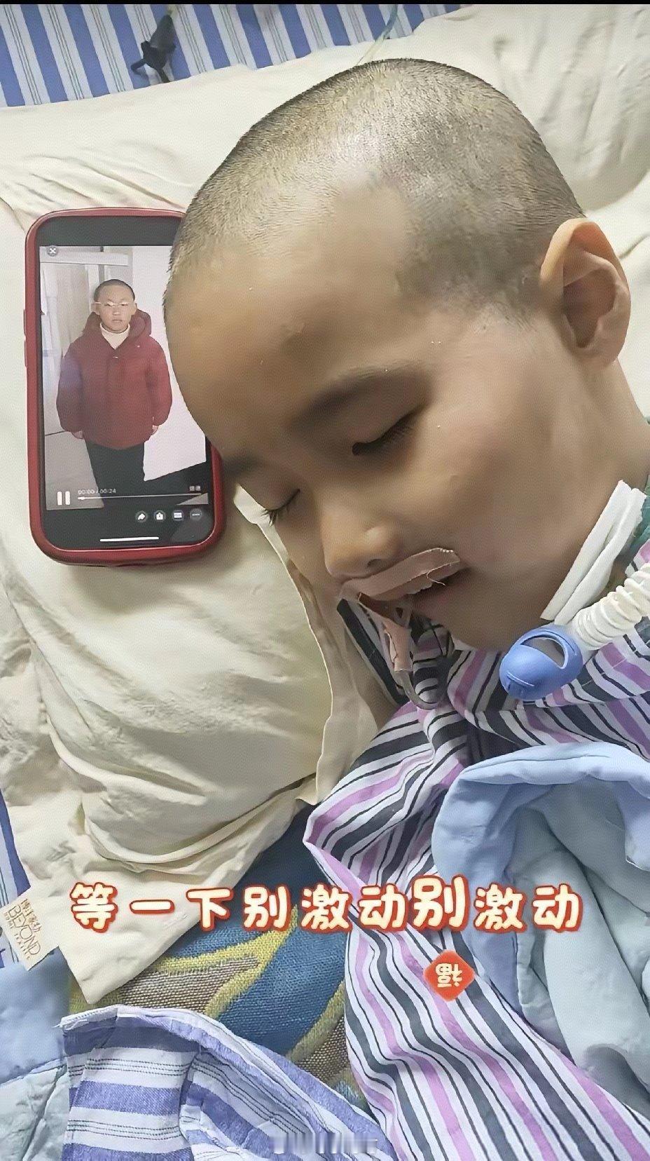 刘楚熙宝贝真的太渴望回归校园了!大年初一同学录视频祝他新年快乐、早日康复,他都没有笑,直到同学说“来跟我们一起上课吧”,楚楚直接乐开花了,笑的小豁牙都露出来了。笑完就激动的猛的要往起翻,这个进步看的我都激动了!妈妈说“别激动别激动”,因为还有个同学要给楚楚送一首诗,同学说欢迎你早日康复回到159班大家庭,妈妈说“上课去不?”,楚楚再次高兴的合不拢嘴。孩子笑了我也笑了,祝勇敢的小战士早日康复,早日背上小书包回归159班大家庭,和这些友爱的老师同学们一起上课。会很快恢复的,宝贝加油!
