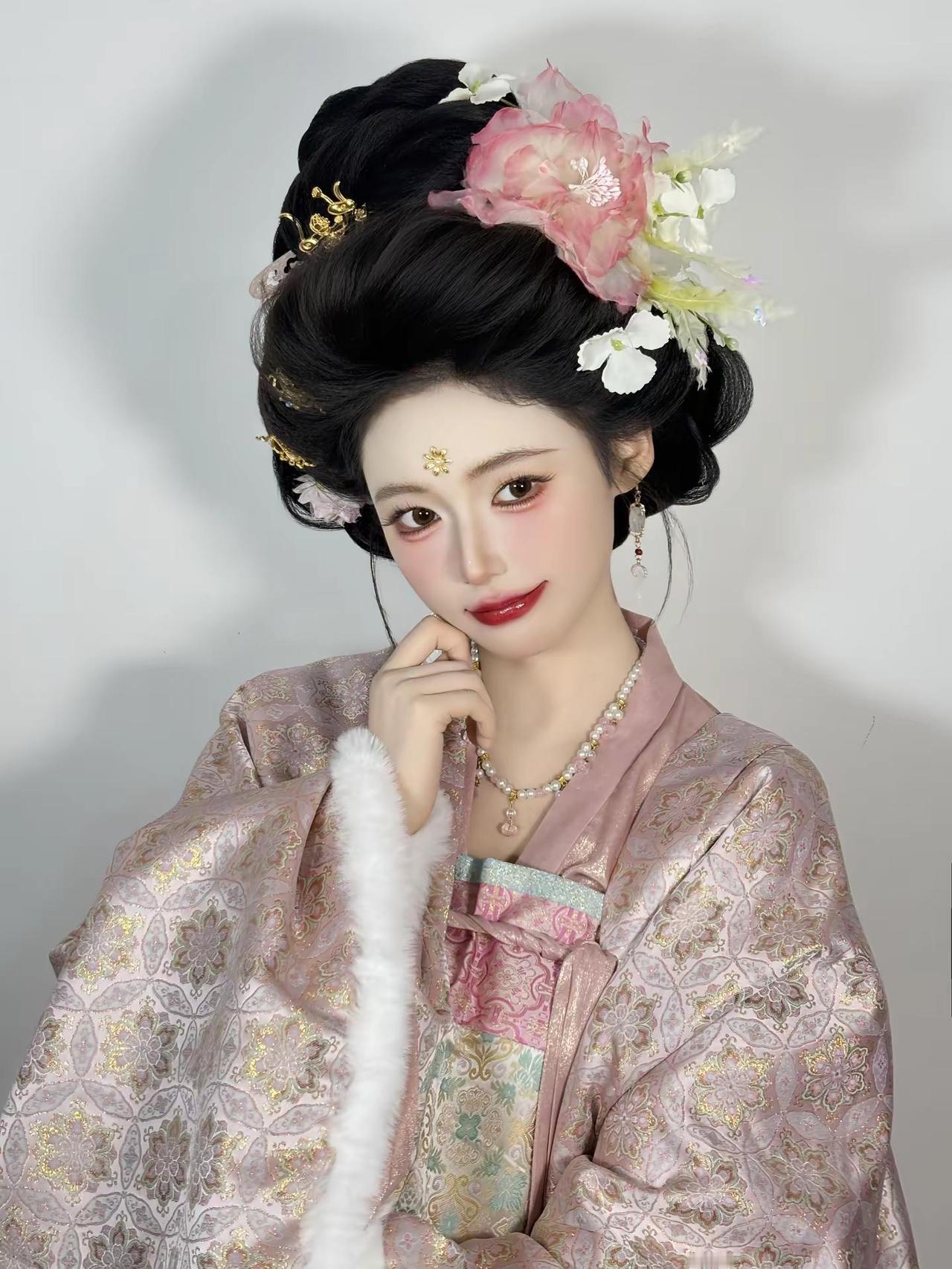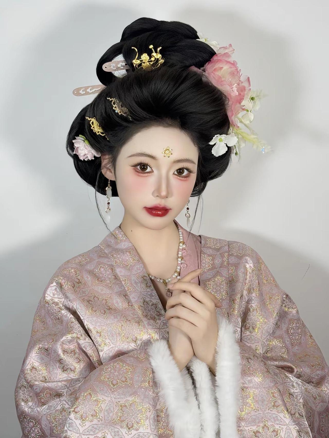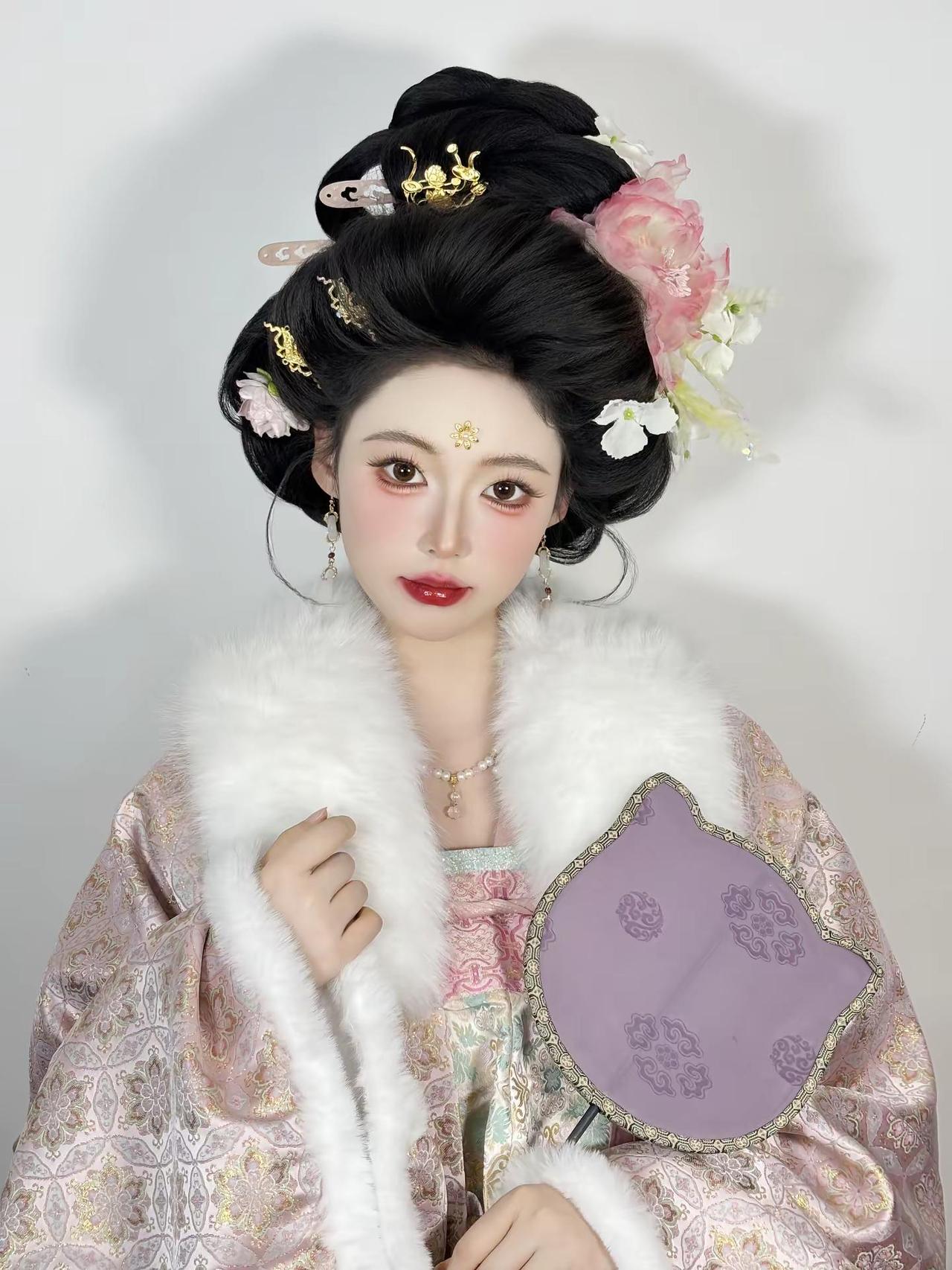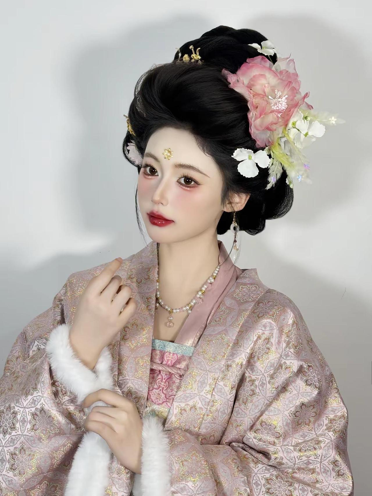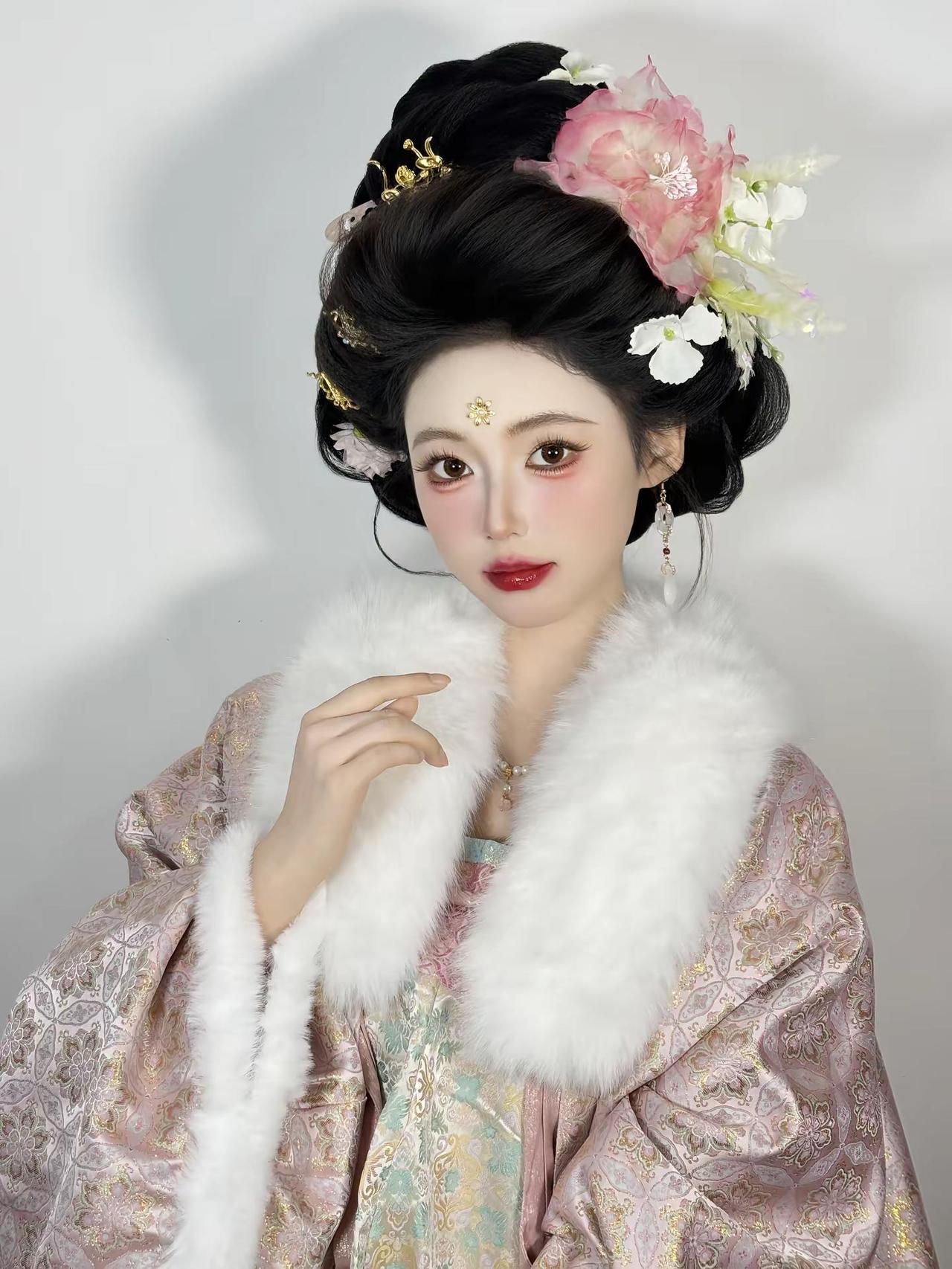 一袭粉衣舞白雪~两只老虎妆造 妆造 唐风 西安汉服