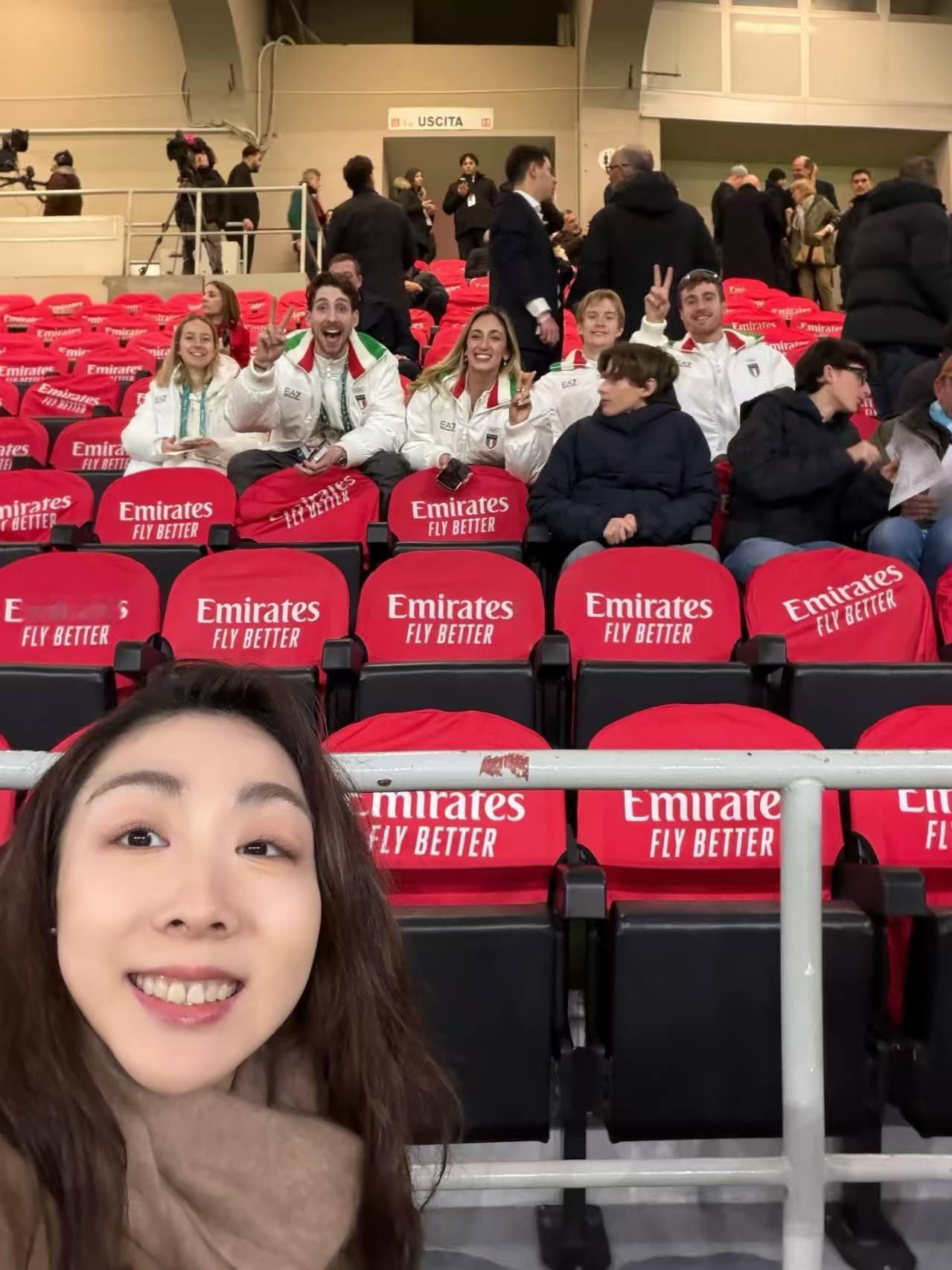 冬奥会 隋文静在全部比赛结束后,一身轻松,去了米兰的圣西罗球场,观看AC米兰的主场比赛,还获得了专属球衣!此刻皆不凡