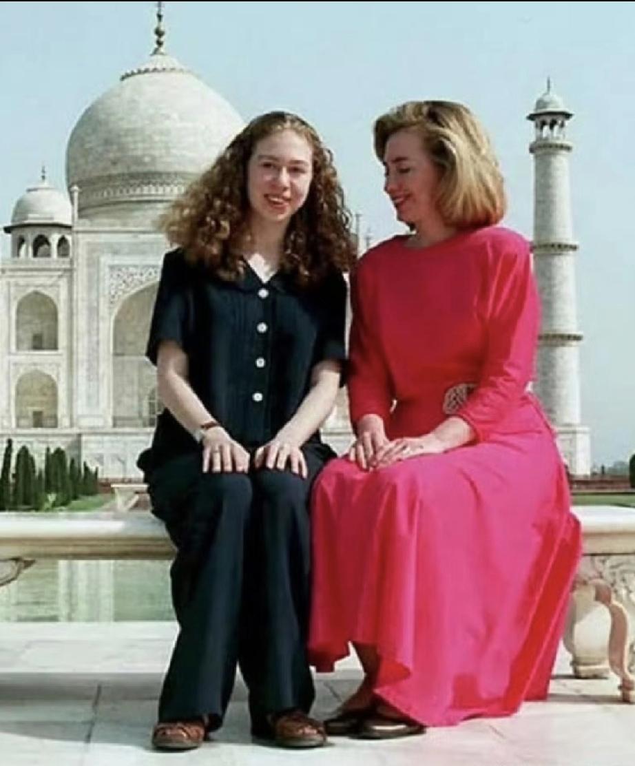 一看就是一家人。 少女希拉里的嘴巴太有特点了,并且完美的遗传给了女儿切尔西。 母女俩给人的感觉是性格开朗口才好; 都说男孩的长相多随妈, 女孩的长相多随爸,切尔西只有脸型和爸爸克林顿的是同款。 切尔西像爸又像妈,是希拉里和克林顿的结合体。 人类的基因遗传真是神奇又强大。