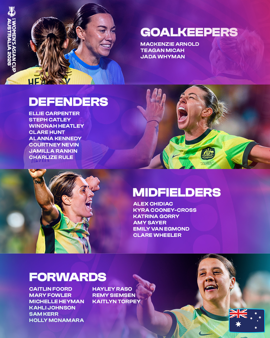 澳大利亚与日本女足亚洲杯大名单公布,亨特、古贺塔子、浜野舞香入选,热刺的主力中后