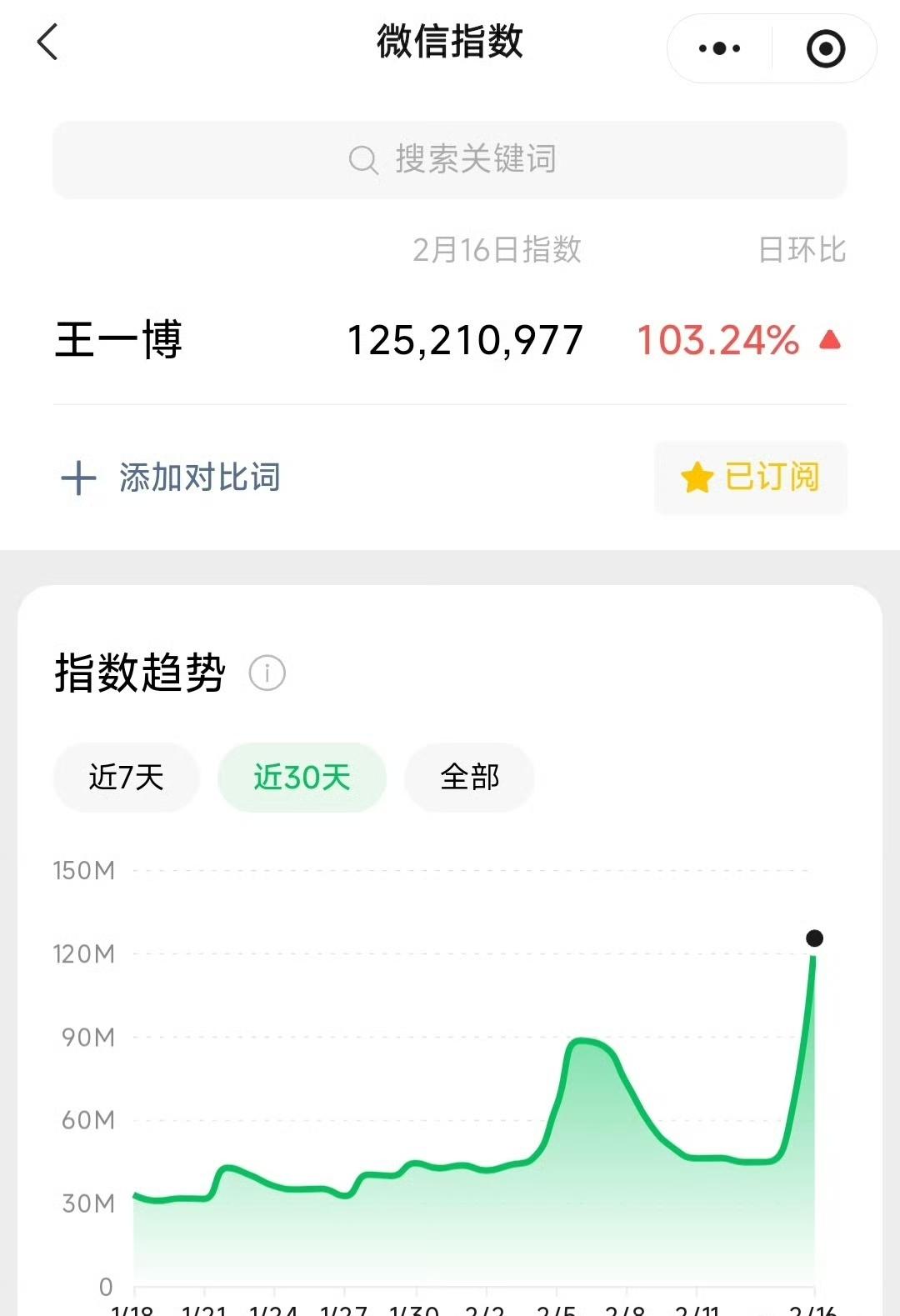 1.2亿+、2.6亿+、1.6亿+!!! 王一博连续三天微指破亿!!!还是在微指改版后公认的破亿更难的情况下。 这高热度、高国民度、全民向大出圈程度,谁能与之匹敌? 王一博