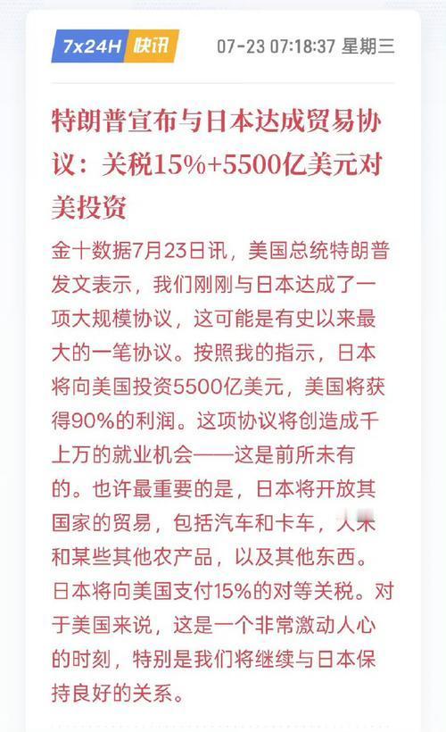 嘿,大家好啊!今天咱们来聊个热乎的——特朗普又搞事情了,这回盯上的是日本的钱包。 事情是这样的,特朗普最近在社交媒体上发了个消息,说日本答应给美国投资5500亿美元,而且第一笔钱已经到位了。最关键的是,特朗普连这钱怎么花都给安排得明明白白:德州建个液化天然气接收站,俄亥俄州整个天然气发电厂,佐治亚州再搞个矿物工厂。 你说这事儿闹的,这三地方可都是特朗普的铁票仓啊!特别是俄亥俄州,那可是特朗普的核心地盘,那儿的天然气发电站还号称是“史上最大”。这不就是用日本的钱,给自己捞政治资本吗?空手套白狼玩得贼溜! 日本这边呢,心里肯定不太爽。谁愿意当冤大头啊?但是不爽归不爽,这钱还真得掏。为啥?因为特朗普说了,一个半月内钱不到位,立马就把关税从15%给你涨回25%。这不是明摆着敲竹杠吗?日本这是被架在火上烤,不掏也得掏。 说到底啊,这事儿也怪日本自己。你看特朗普上台后,专门逮着盟友薅羊毛,为啥?因为他拿中俄这些对手没办法啊,只能欺负欺负自己人。日本之前又老是在一些事儿上跟着美国后面跑,得罪了不少邻居,现在更需要美国罩着。所以特朗普开价再离谱,日本也只能硬着头皮掏钱。 这就叫啥?叫搬起石头砸自己的脚。在国际关系上,太依赖某一个国家,最后就容易被拿捏。日本现在就是活生生的例子,被特朗普敲了5500亿美元的竹杠,还得笑着说谢谢。