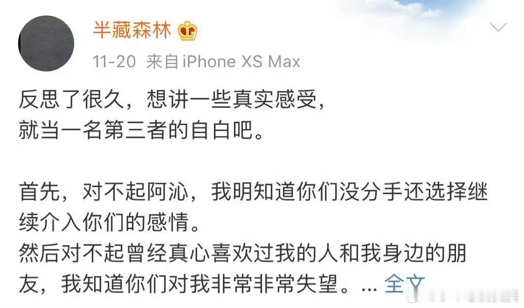 半藏森林曾发文承认插足感觉她的名字好久没听过了