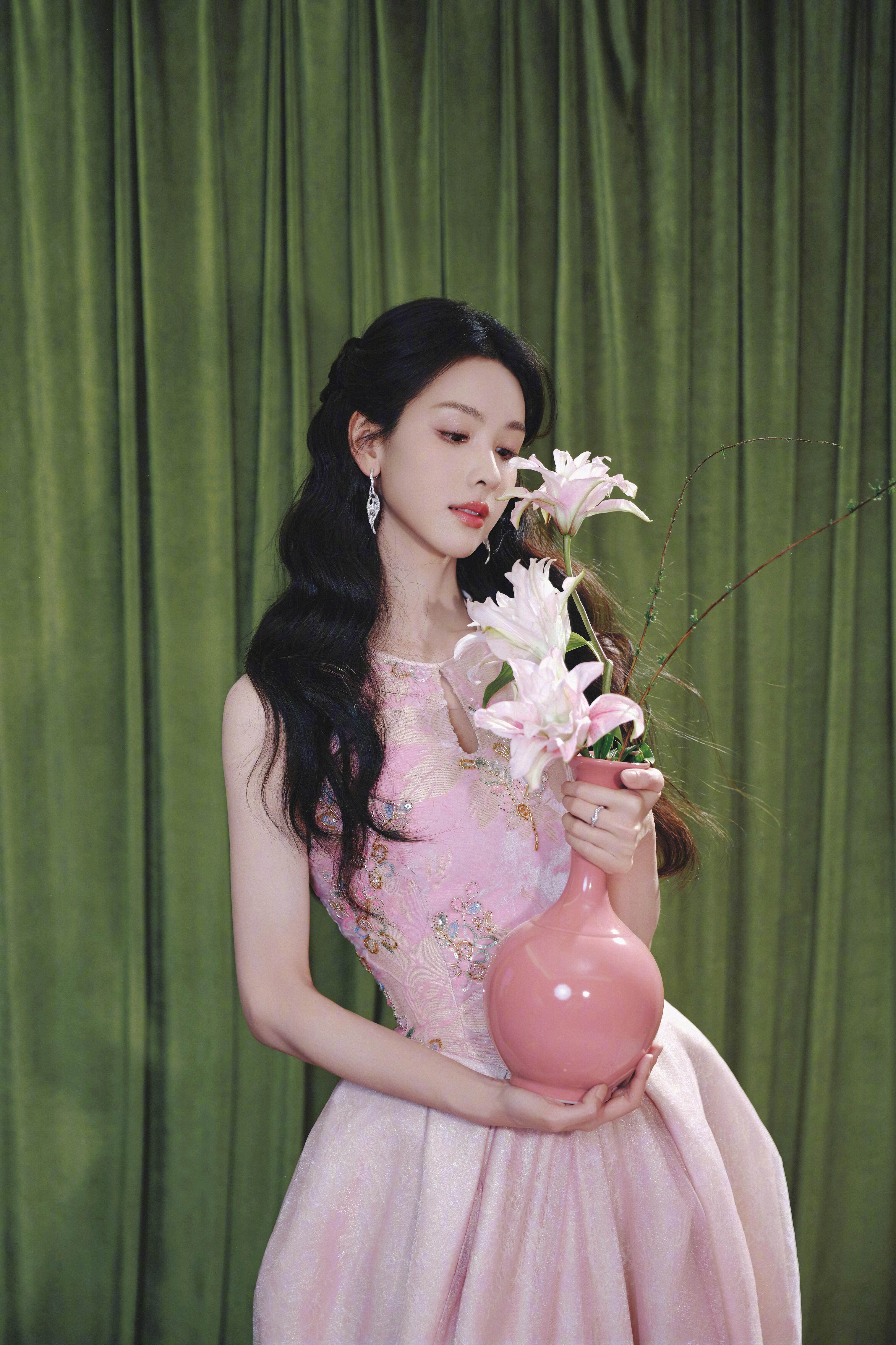 陈都灵亮相2026百花迎春,一袭挂脖粉纱礼裙缀以彩钻刺绣,利落廓形勾勒曼妙身姿。墨绿幕布衬底,粉绿撞色间将春日浪漫与东方雅致完美融合,花仙子具像化,赴一场百花齐放的美学之约。