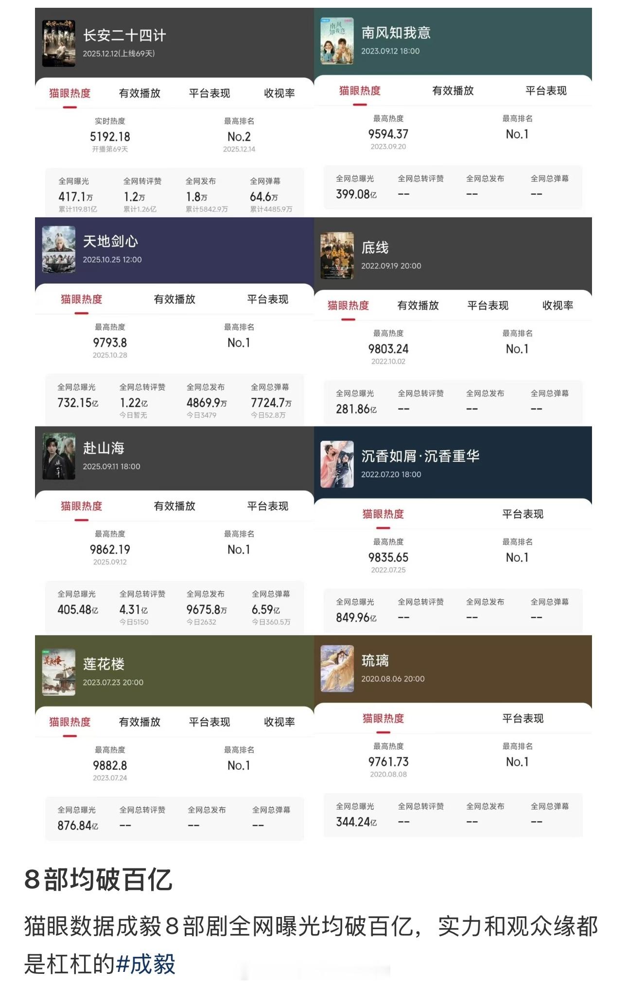 🐱眼显示成毅8部剧全网曝光均破百亿 成毅8部剧全网曝光均破百亿