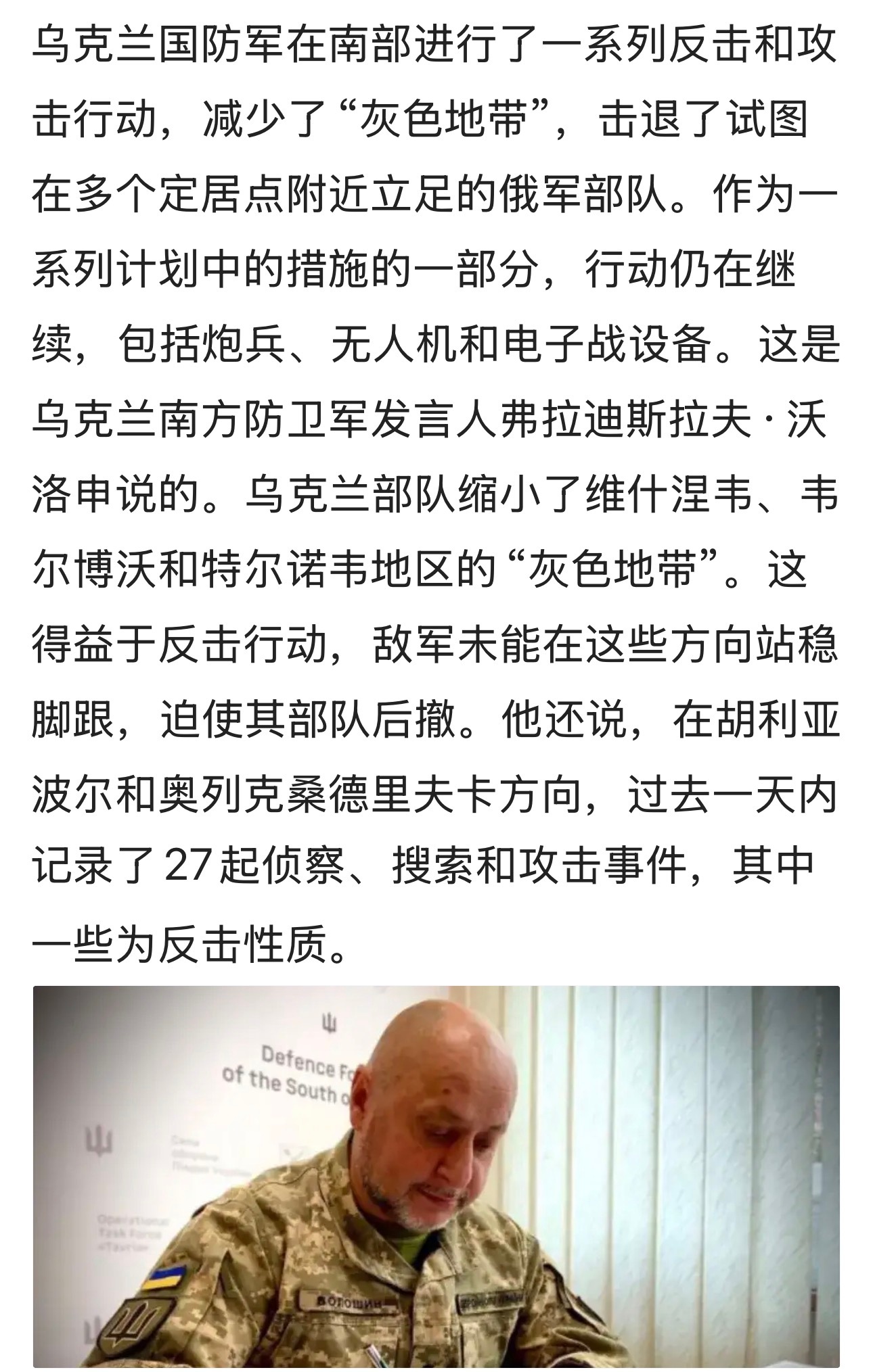 乌军只是进行了一系列反击和攻击行动……并不是俄军博们说的“反攻”。