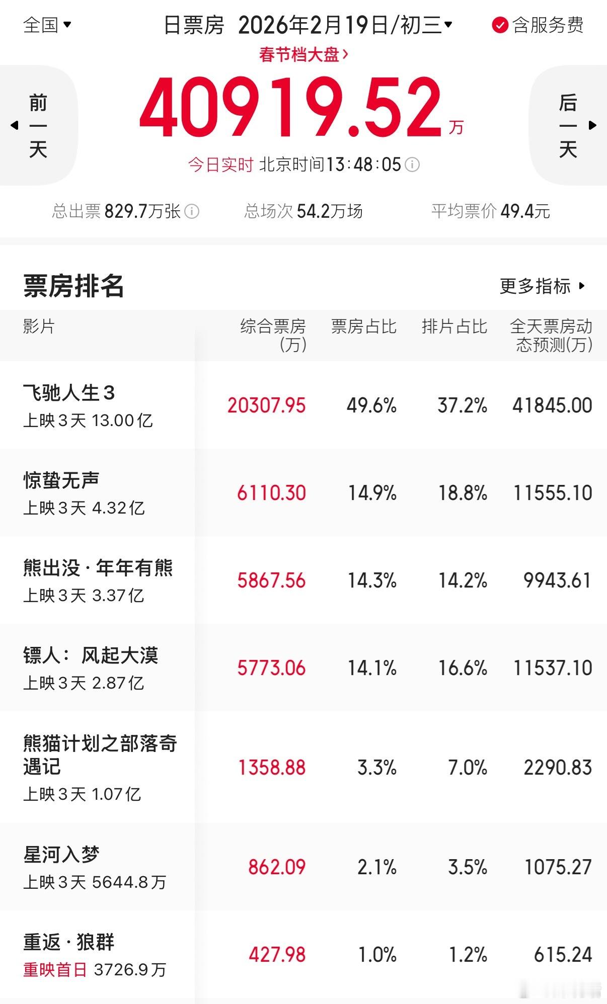 反倒是《镖人》因为武侠打戏出圈,口碑慢慢逆袭,极有可能在今天或明天升到单日票房第二。