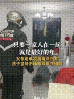 一家人在一起就是最好的过年!除夕凌晨两点,在外跑单的男子终于收工回家,为了让孩子们高兴,一家人快乐快乐,男子买了孩子们最爱喝的饮料。 当晚时间不早了,男子以为孩子们都睡了,可让他喜出望外以及格外幸福的是,两个孩子一直在等爸爸,听到爸爸回来两人奔奔跳跳出了卧室,并且在第一时间给爸爸拜年。 这个瞬间,男子不知有多幸福,想必一整天的劳累瞬间烟消云散,其实幸福就源于平凡的生活,它不在乎你有多富,更不会嫌弃你有多穷,而是一家人在一起,开心快乐就好。