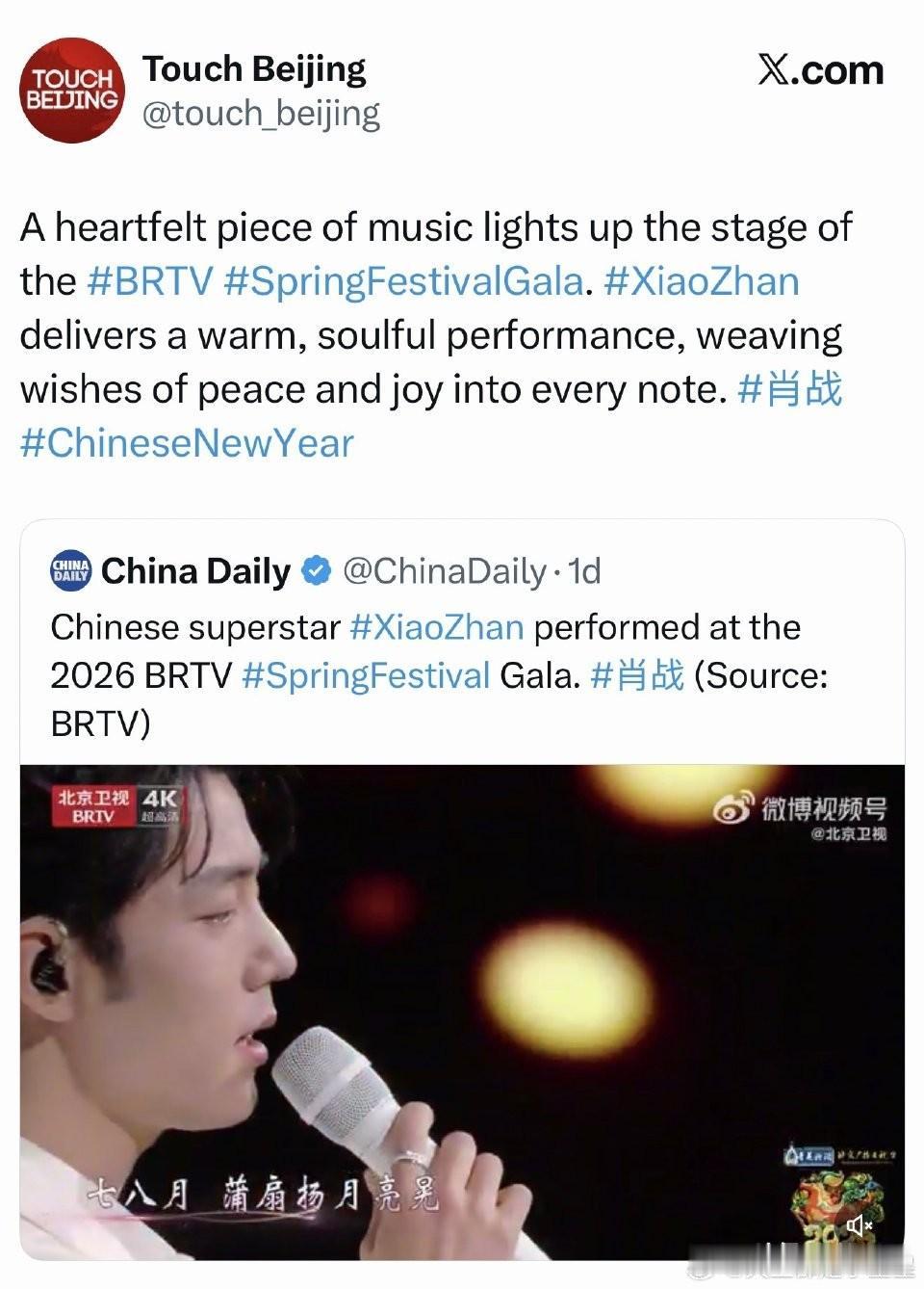中国日报在外网(X推特)上发布的肖战北京春晚舞台!!! Chinese superstar,中国人的骄傲,这是真正的门面担当,让全世界都来看见肖战!