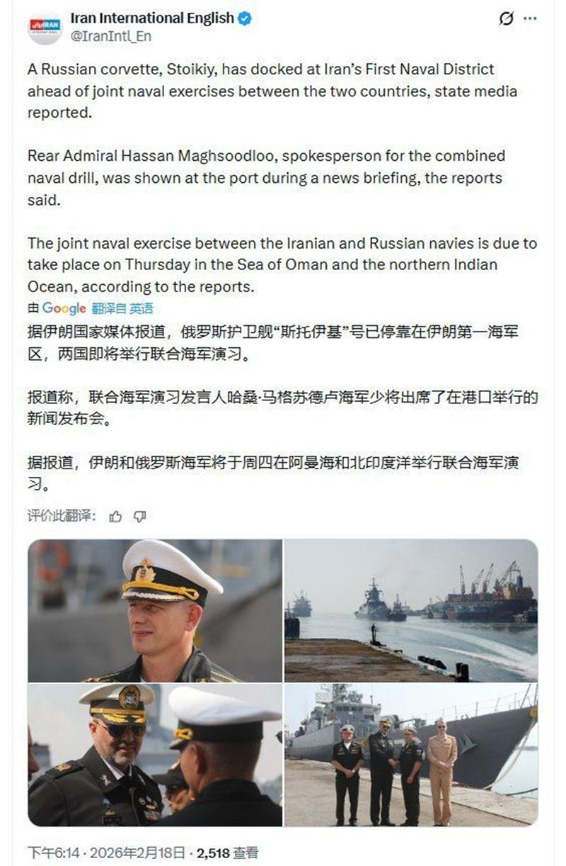 中东的海空力量在激增。一触即发。拭目以待。 航母: 已部署的林肯号航母。航母上的舰载机联队包括F-35C“闪电II”战斗机、E-2D“鹰眼”预警机、F/A-18“超级大黄蜂”战斗机、MH-60R/S“海鹰”直升机、CMV-22B“鱼鹰”倾转旋翼机; 正在抵达途中的福特号航母。被誉为“世界上能力最强、适应性最强、杀伤力最强的作战平台”。航母上的舰载机包括F-35“闪电II”隐形战机、预警机等等。 庞大的机队: F-22“猛禽”隐形战机、F-15、F-16、F35,E-3G“哨兵”预警机,维持行动所需的KC-135空中加油机,RC-135V铆钉联合情报飞机。 军队: 各个基地已部署数万名士兵。 Axios引用消息人士的话称,白宫官员评估,未来几周内发生军事行动的概率为90%,且可能是美以联合行动。 有趣的是,伊朗再次用行动表明:我可不是吓大的!这不,伊朗和它背后的老朋友俄罗斯要在阿曼海举行联合海军演习了。 留给哈梅内依的时间还够吗。他应该还在伊朗吧。