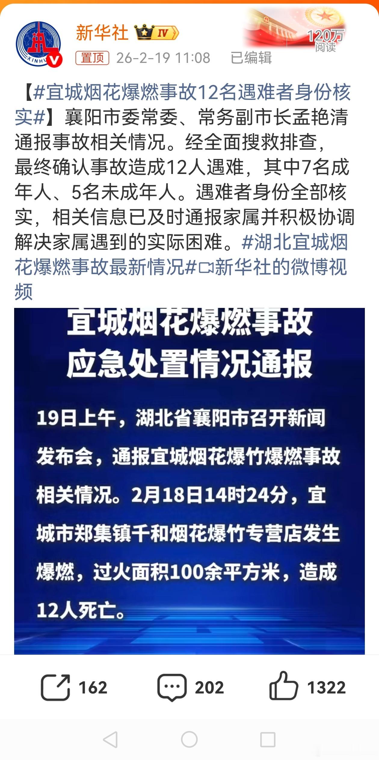 宜城烟花爆燃事故12名遇难者身份核实如果不出所料的话,宜城县有关领导会被处分,甚至会有个别领导被撤职查办。