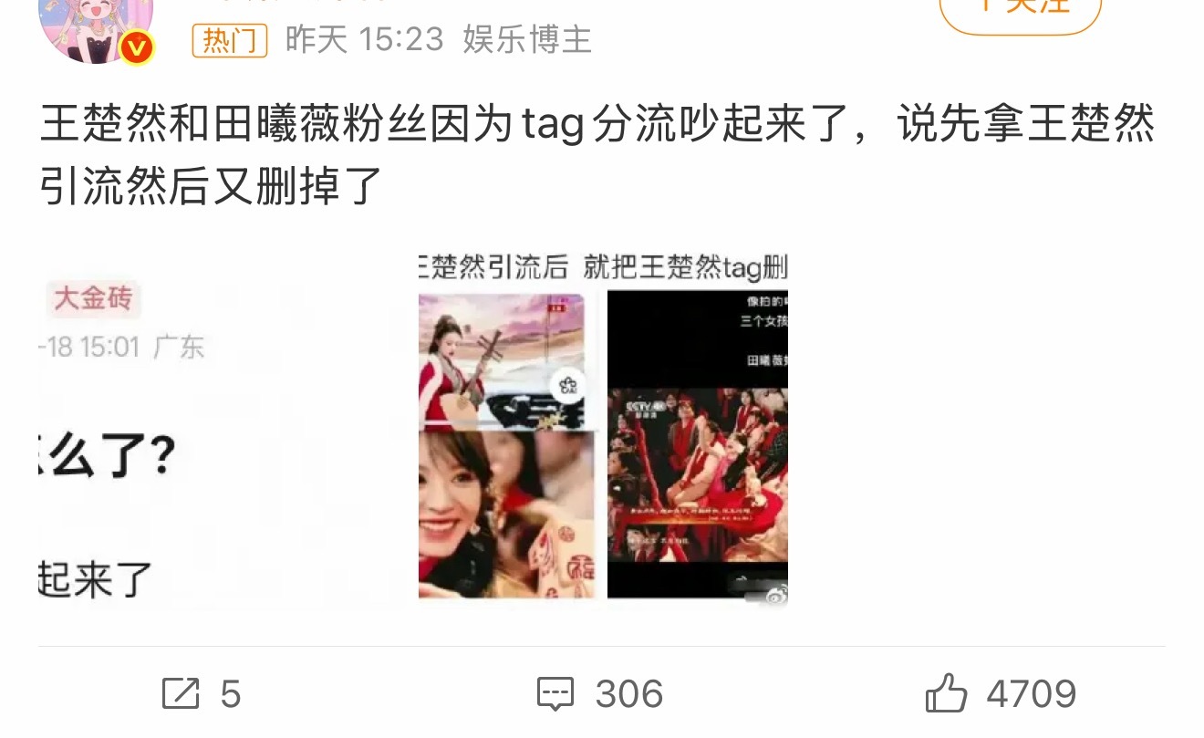 王楚然和田曦薇粉丝怎么吵起来了,不过我记得抖上第一个百万赞不是田曦薇张钧甯吗…