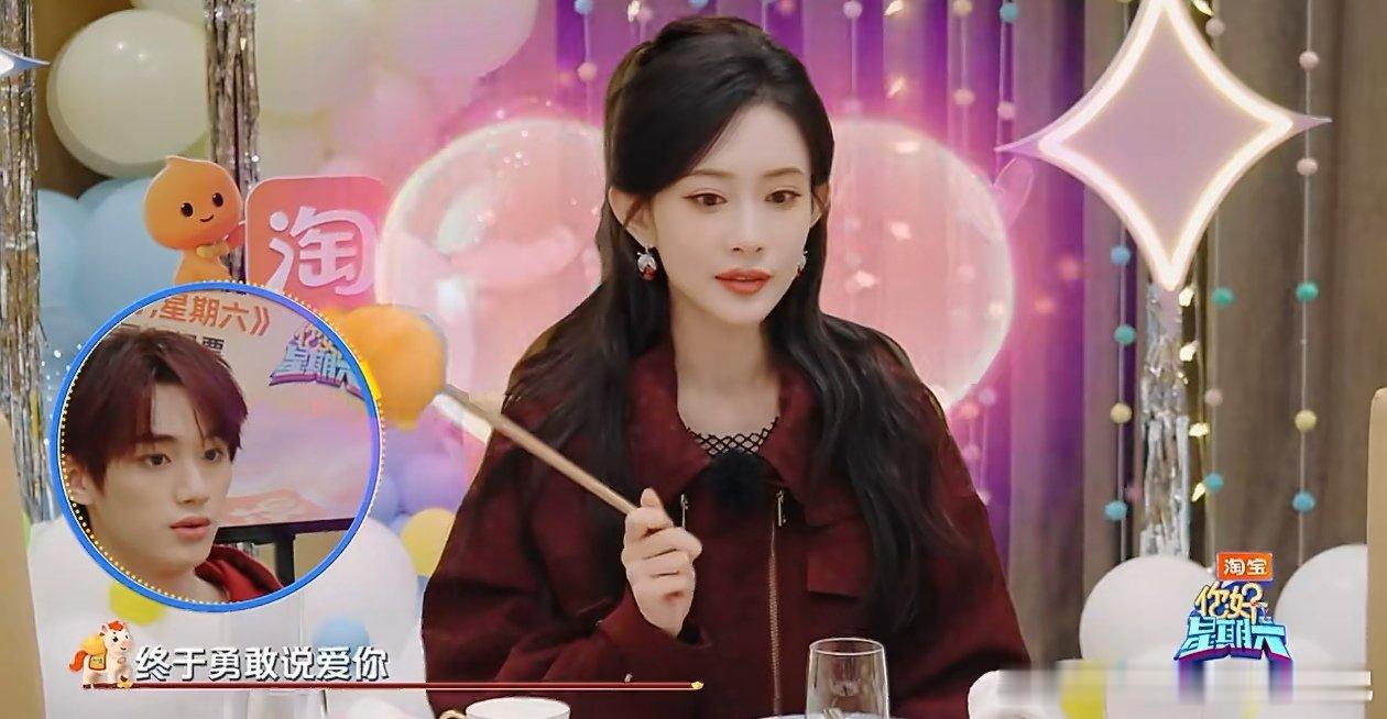 孟子义这该死的甜美你好星期六 团圆饭热闹开启,等待成员的间隙,孟子义坐在座位上练起跨年舞台《说爱你》,轻声哼唱,温柔比划,认真又俏皮,这甜美直接爆棚!
