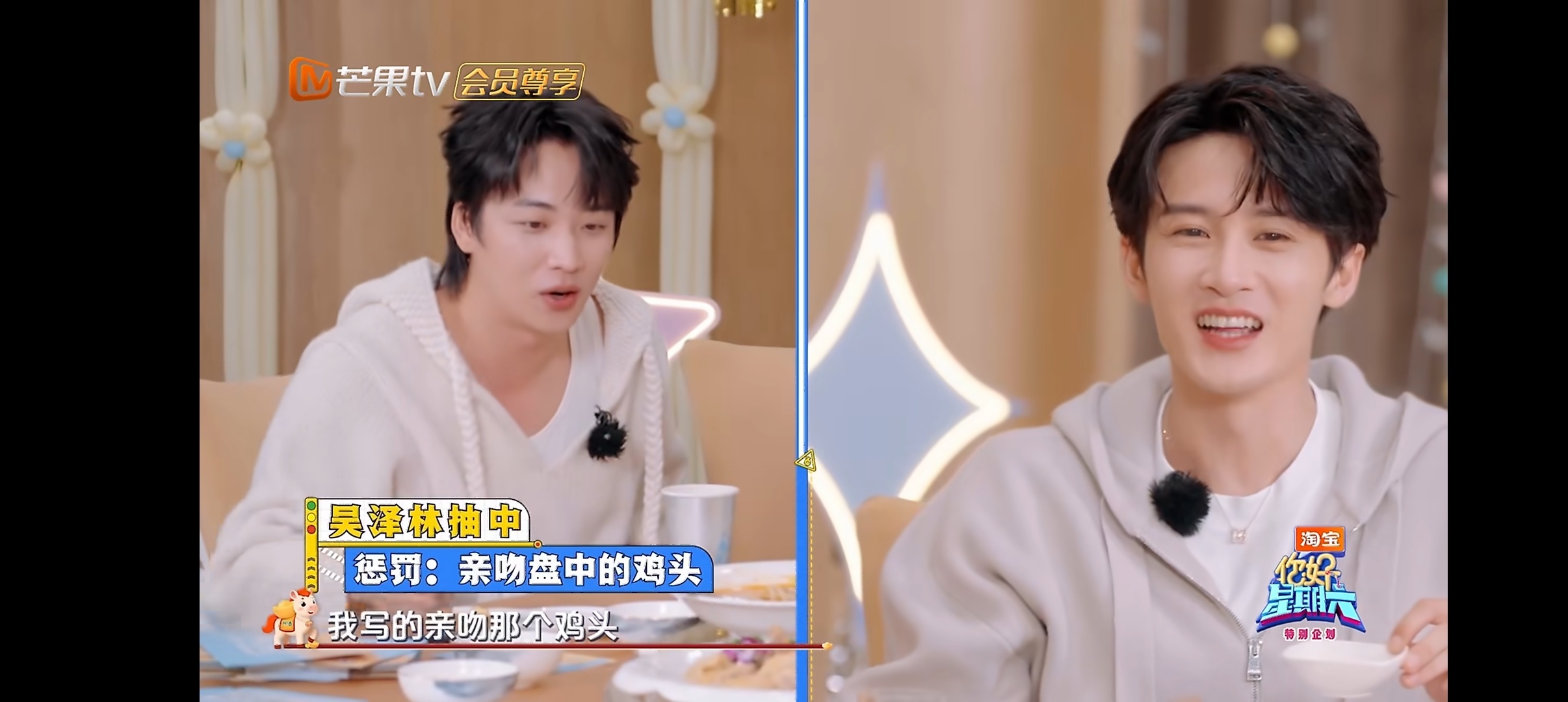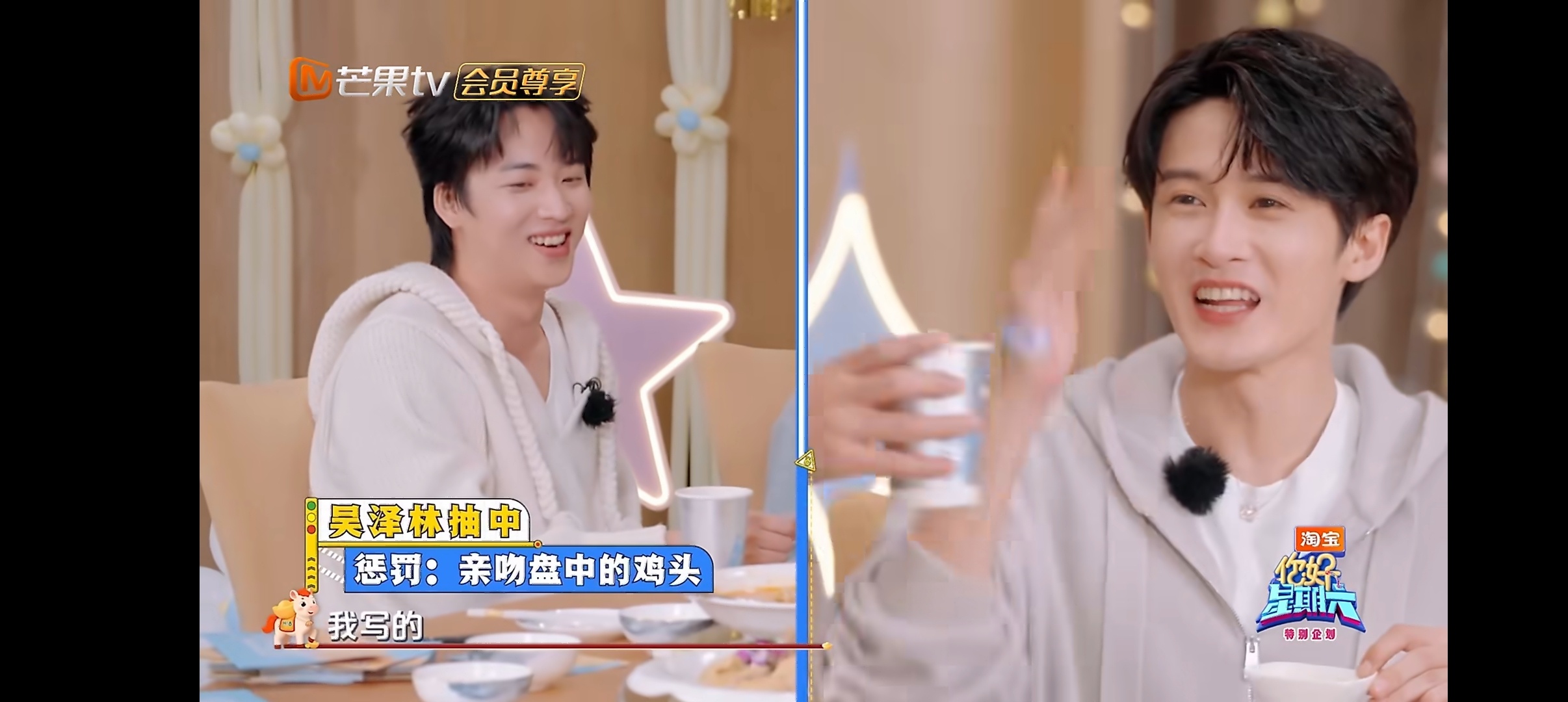 檀健次是懂怎么惩罚的 大哥就这么憋着坏劲儿哈哈哈哈,游戏设定惩罚檀健次写了亲吻鸡头,吴泽林直接破防了你好星期六