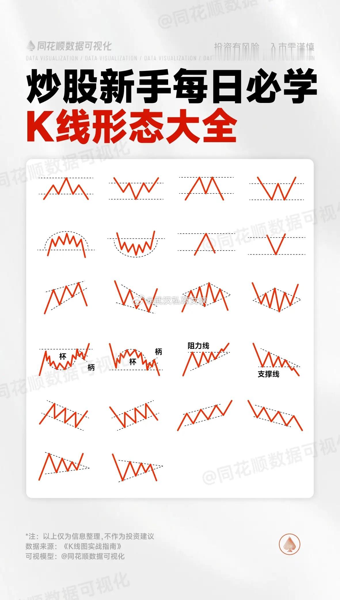 炒股新手每日必学,经典K线形态大全同花顺数据可视化股市分析股票基础知识K线图分析