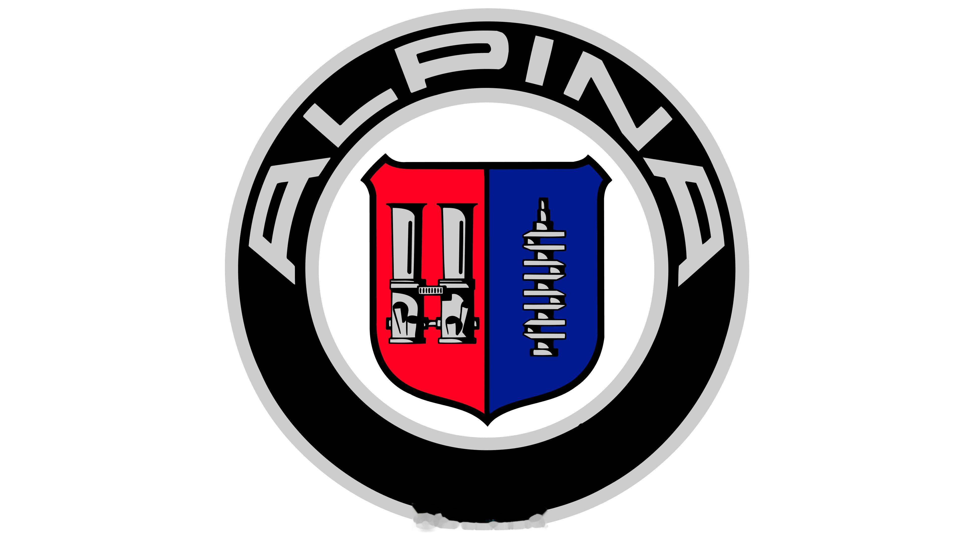 Alpina新logo,保留了原徽标上的机械部件,去掉了红蓝相间的盾形标志,越来
