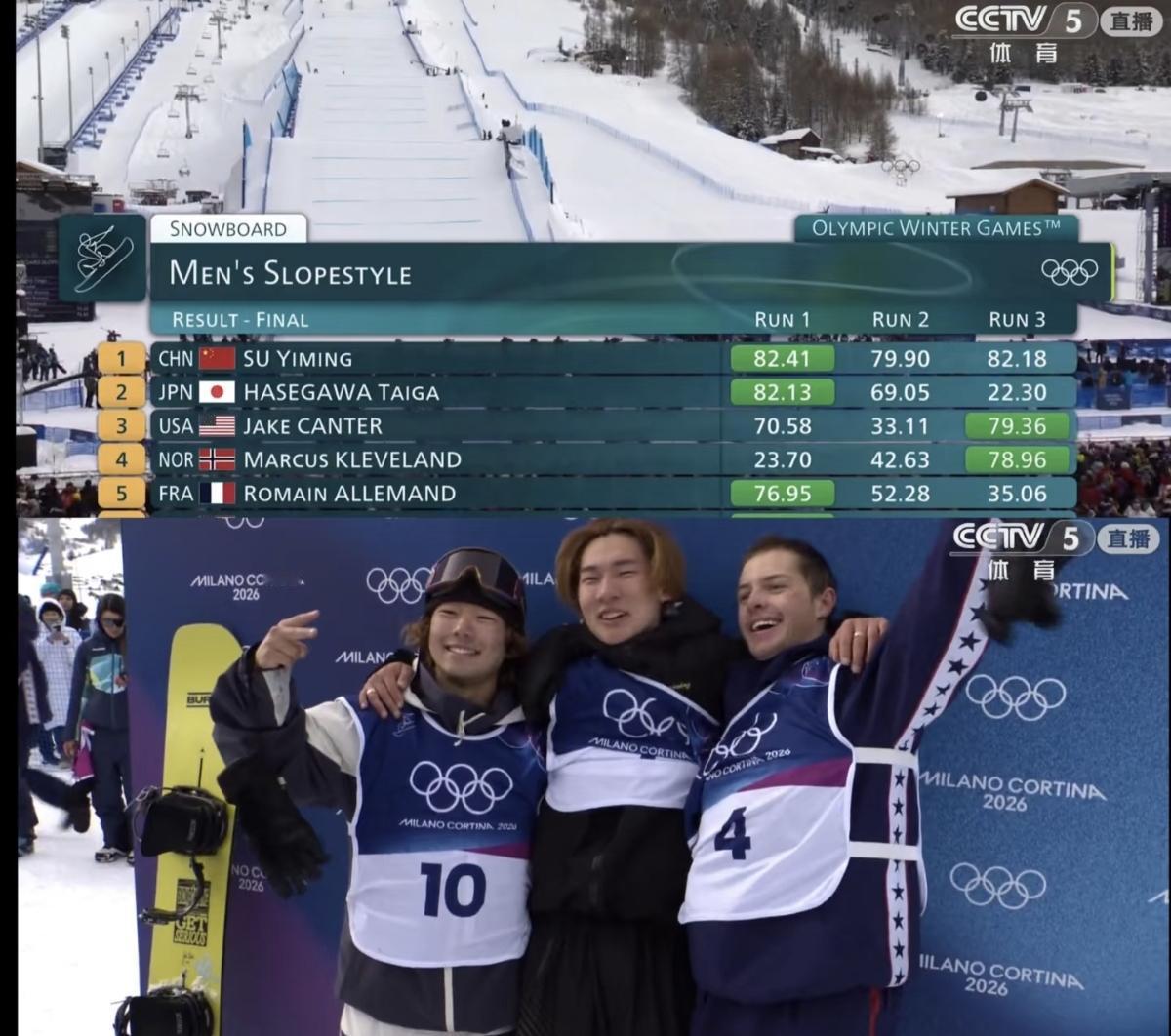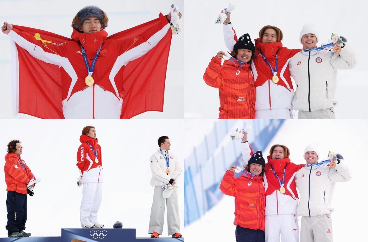 三人把耶稣、佛祖、神道都请个遍,中日美关系最和平的一次,三个人紧紧相依,第三怕出去,第二怕变铜,第一怕丢金,瑟瑟发抖。新西兰选手:为啥后背发凉呢[摊手] 一个人的成全,好过三个人的纠结,看到新西兰选手摔倒在赛道上,三个人都兴奋的跳了起来,金银铜牌锁定。最搞笑的是,他们三个冲出去,还给了新西兰选手一个镜头: 20岁的孟席斯还在那绝望的躺着呢,他以预赛第一的成绩进入了决赛,因为失误与奖牌无缘。最高兴的是美国选手,他直接弹射起飞开始欢乐转圈圈,比金牌还开心。 这本是关系最复杂的三个国家,但是这一刻看到了彼此的欣赏与祝福,这就是竞技体育独有的魅力吧。颁奖时也很逗,小苏摘下毛毛发箍准备升旗唱国歌,日本选手立刻摘帽子跟着转身,美国选手一开始都不知道这个环节该看哪里,看完中日两位之后马上也脱帽致意。世界大同也许就是这样吧! 必须给苏翊鸣点赞,太牛了,其他选手基本都有大失误,但他一个都没有!全场第一第二高分都是他。 苏翊鸣 冬奥会