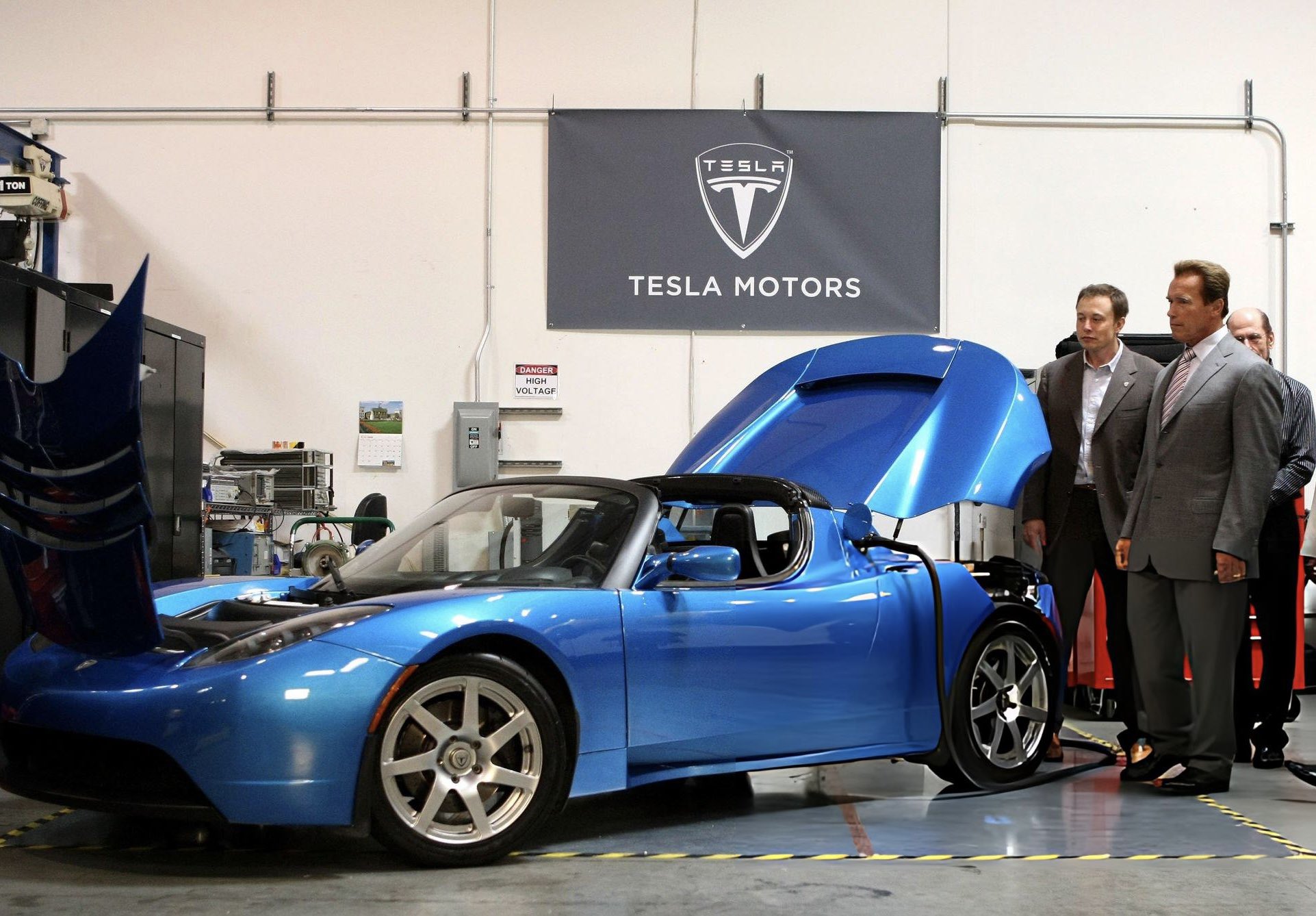 2008年,马斯克向施瓦辛格展示特斯拉Roadster