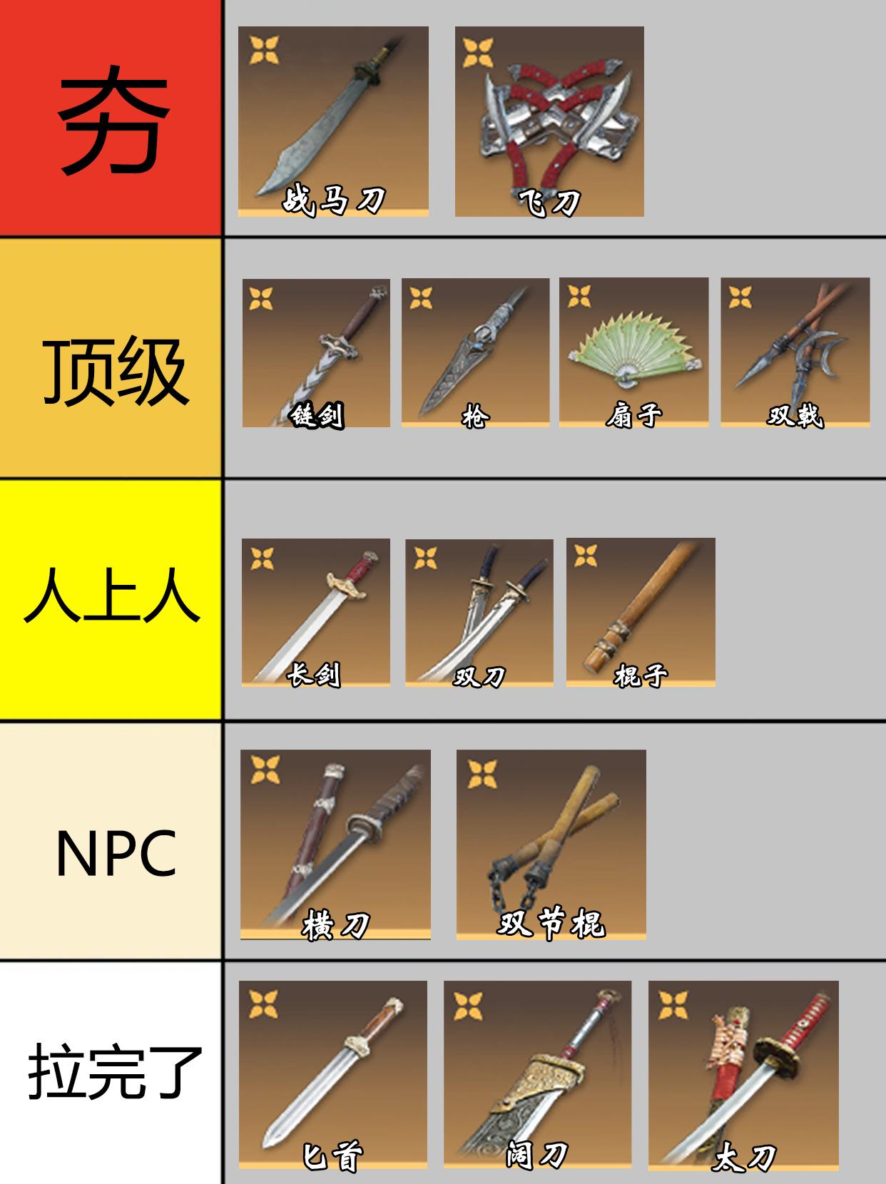 永劫全武器印象表。